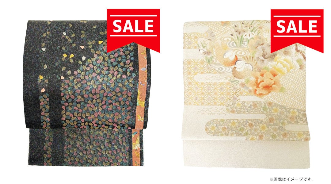 左:袋帯 黒地 金銀糸 青銅箔 桜の花びら 蝶 55,000円(税込)→16,500円(税込)
