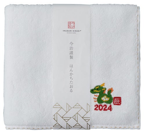 2024年の干支である“辰”の刺繍をした、今治謹製オリジナルのはんかちたおる
