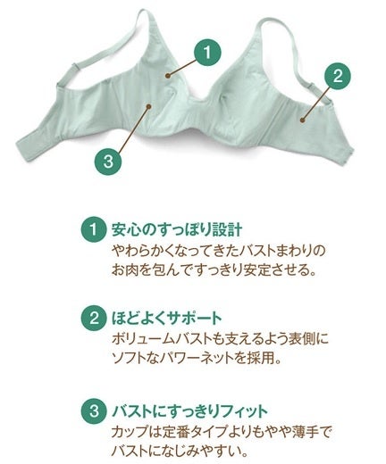 「Tシャツみたいなブラの愛用者です。肌が弱いのでとても助かっています。胸の形もきれいに見えて、着け心地も良いです。(30代)」