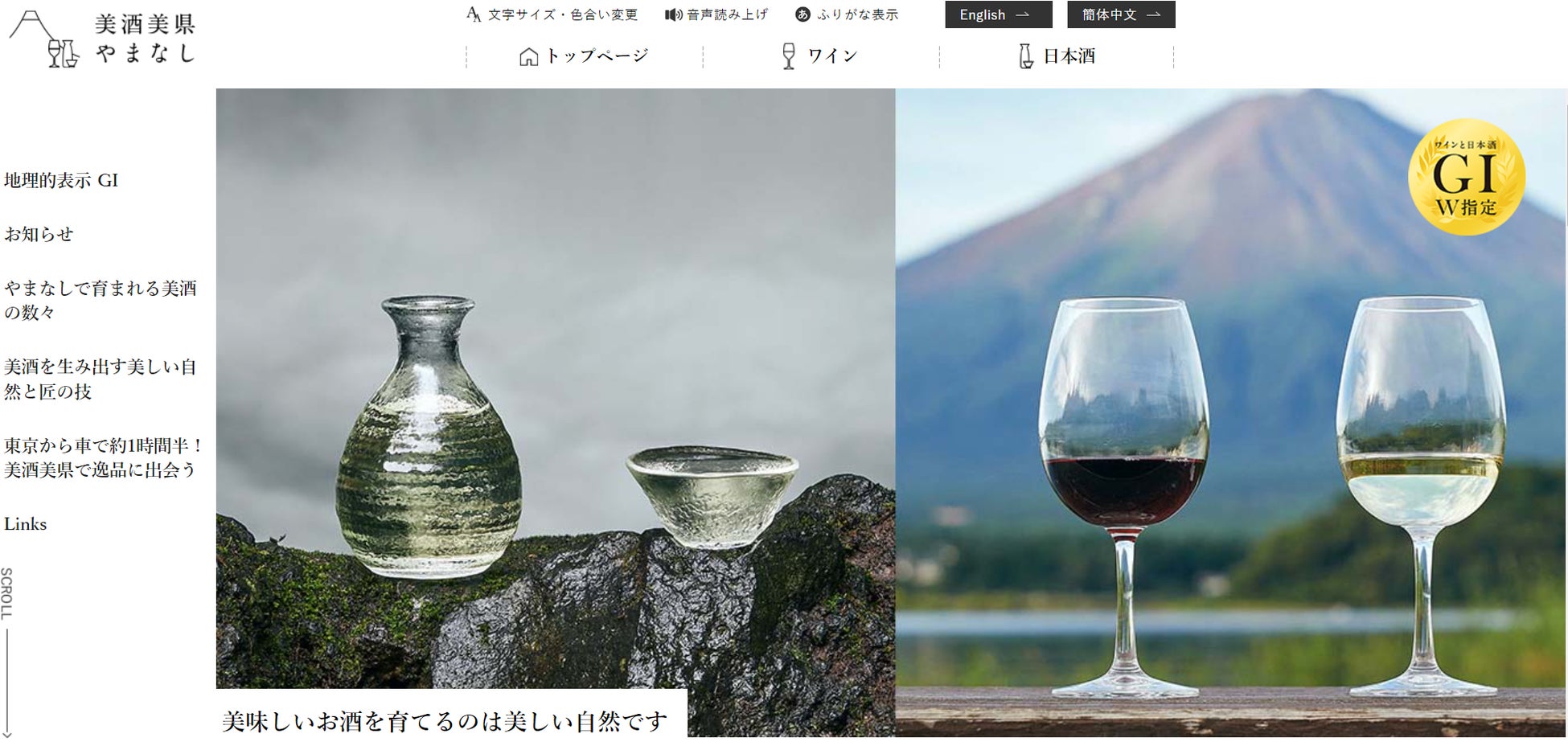 山梨県(知事:長崎幸太郎)では、平成25年9月に全国で初めてワインで地理的表示(GI)「山梨」の指定を受け、令和3年4月には日本酒でもGI「山梨」の指定を受けたことを機に、「美酒美県やまなし」と銘打ったプロモーションを行っています。