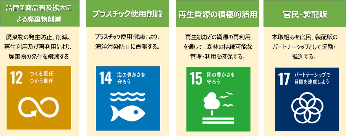 「選ぼう!3Rキャンペーン」は、令和6年8月に閣議決定された「第五次循環型社会形成推進基本計画」に基づき、ライフサイクル全体の最適化を図るために、環境省が消費者に近い事業者として特に主導的な取り組みが期待されるメーカー各社及び小売業各社と連携した取り組みです。この取り組みは、消費者一人ひとりが、お買物を通じて3Rや資源の大切さを認識・共感し、日頃の消費行動(商品選択)へ結びつけてもらうことを目的としたキャンペーンです。当キャンペーンは「持続可能な開発目標(SDGs)」の、目標12「つくる責任 つかう責任」、目標14「海の豊かさを守ろう」、目標15「陸の豊かさも守ろう」、目標17「パートナーシップで目標を達成しよう」を推進しています。