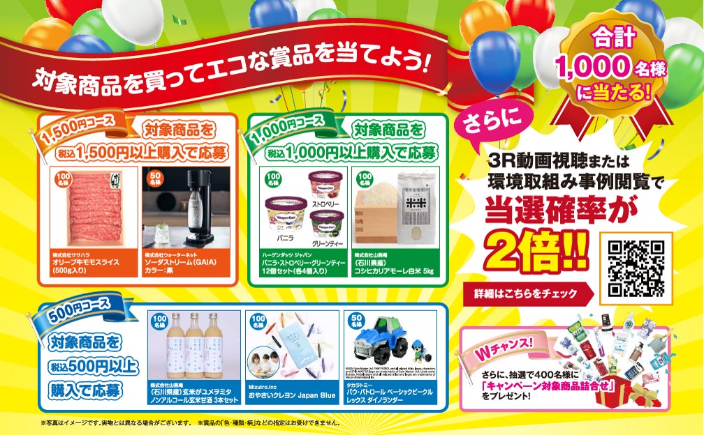 ※ 3R動画視聴または環境取組み事例閲覧で当選確率が2倍になります。