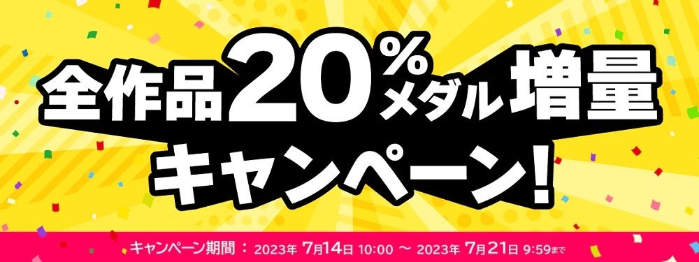 2023年7月14日(金)より全作品対象のメダル増量キャンペーンや、1日1名様に当たるQUOカードプレゼントキャンペーンが開催となります。