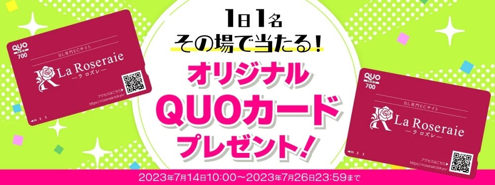 Roseraieの公式Twitterアカウント(https://twitter.com/Roseraie_books)にて、700円分QUOカードが1日1名様に当たるキャンペーンを開催いたします。