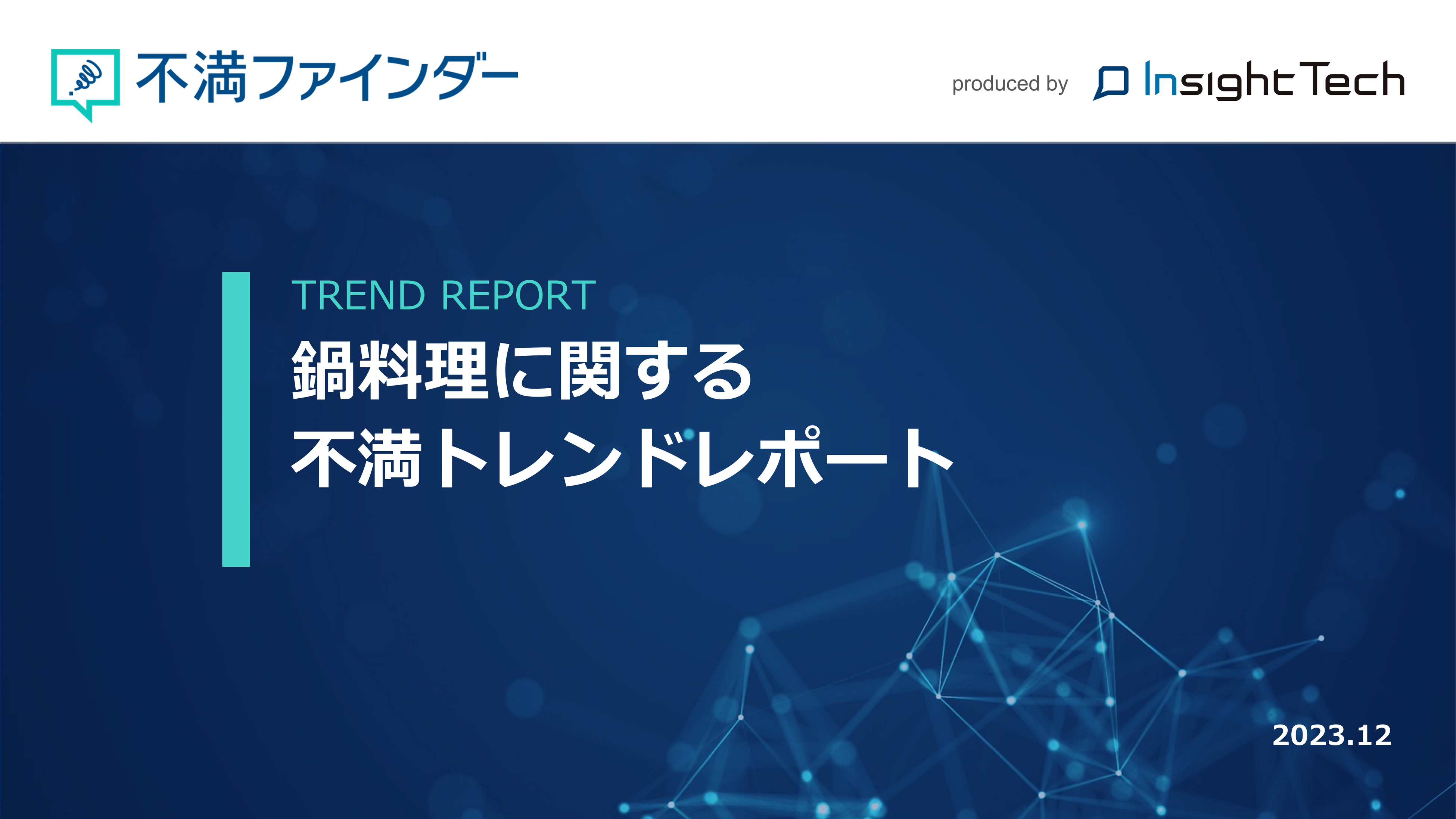 株式会社 Insight Tech(東京都新宿区、代表:伊藤友博、以下 Insight Tech)は、同社が運営する『不満買取センター』に寄せられた鍋料理に関する不満を『不満ファインダー』を用いて解析・考察したレポートを公開しました。