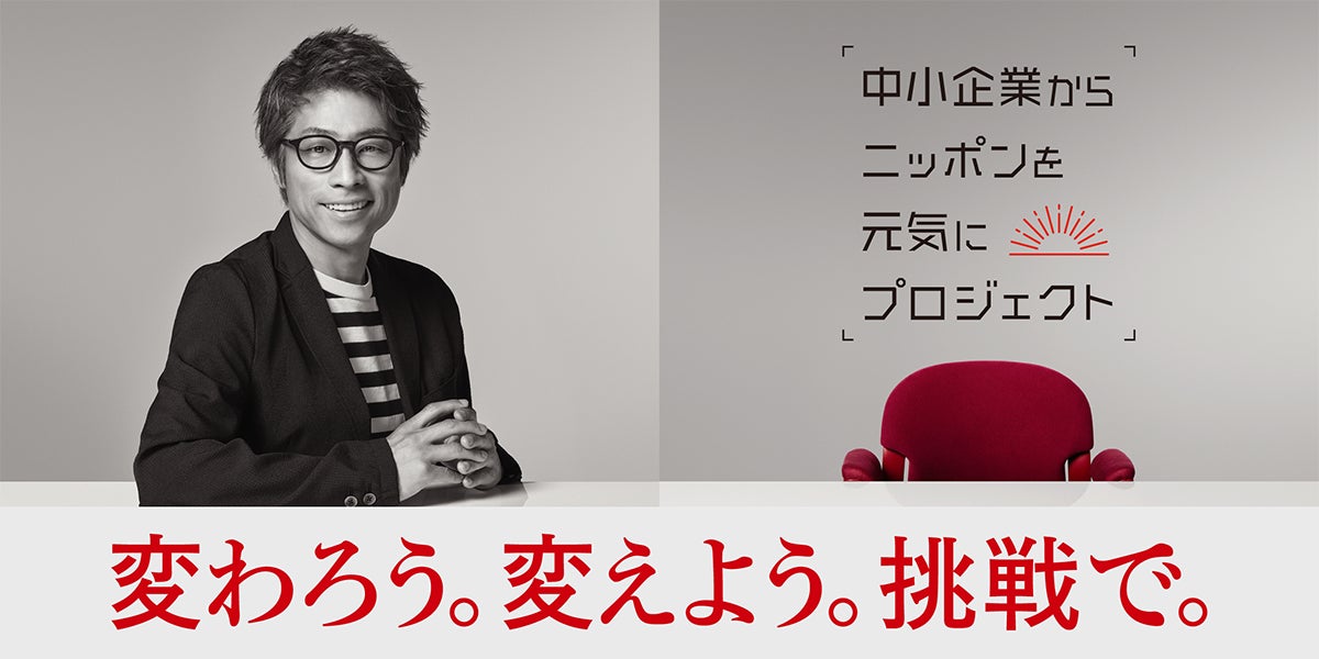本プロジェクトでは「変わろう。変えよう。挑戦で。」をビジョンに掲げ、公式アンバサダーとともに、 参画いただいた中小企業の情報発信力・PR力の強化、働く社員のモチベーション向上の機会創出、SDGs推進活動など全方位的なサポート(*)を行っています。中小企業が日々求められる変化に対して”挑戦”していくことこそが、未来を創り出す大きな一歩となると考え、プロジェクトに参画いただく中小企業の方々、公式アンバサダーの方々と共に、日本活性化の皮切りになることを目指して参ります。