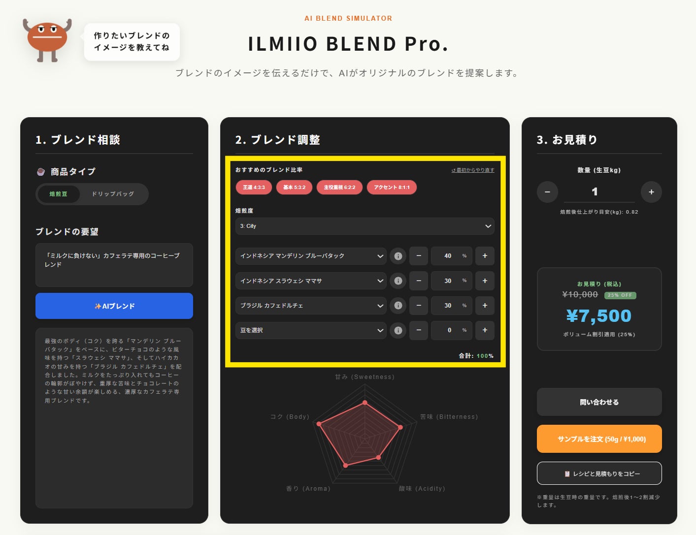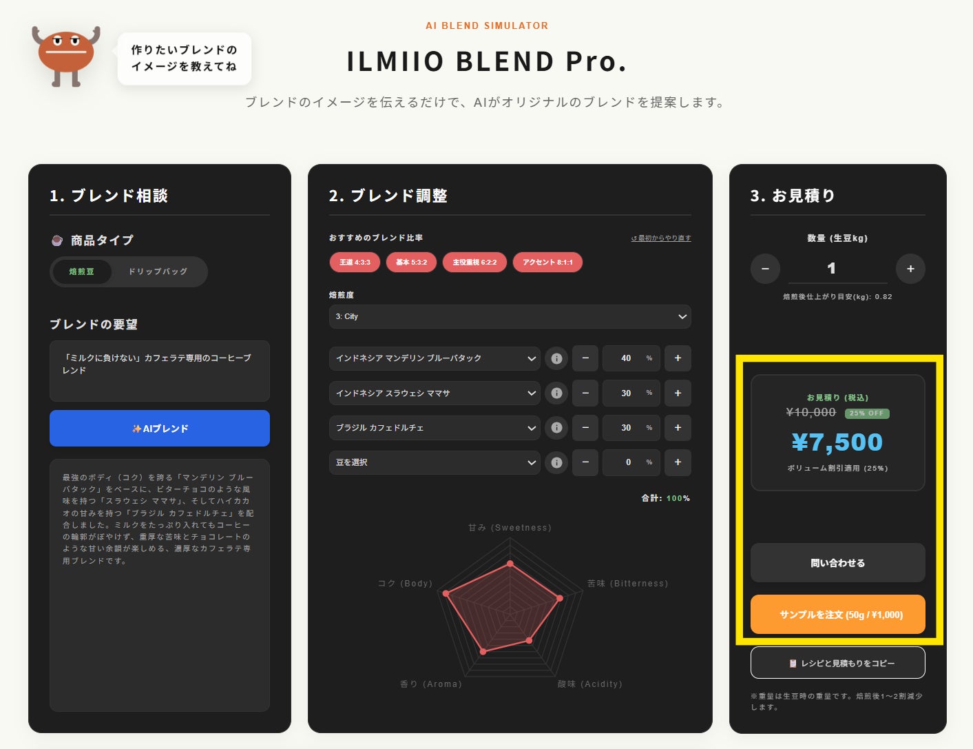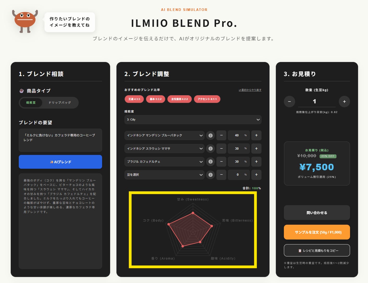 【ILMIIO ROASTERY Lab.】AIがオリジナルブレンドを瞬時に提案。自動シミュレーター「ILMIIO BLEND Pro」のサービス提供開始