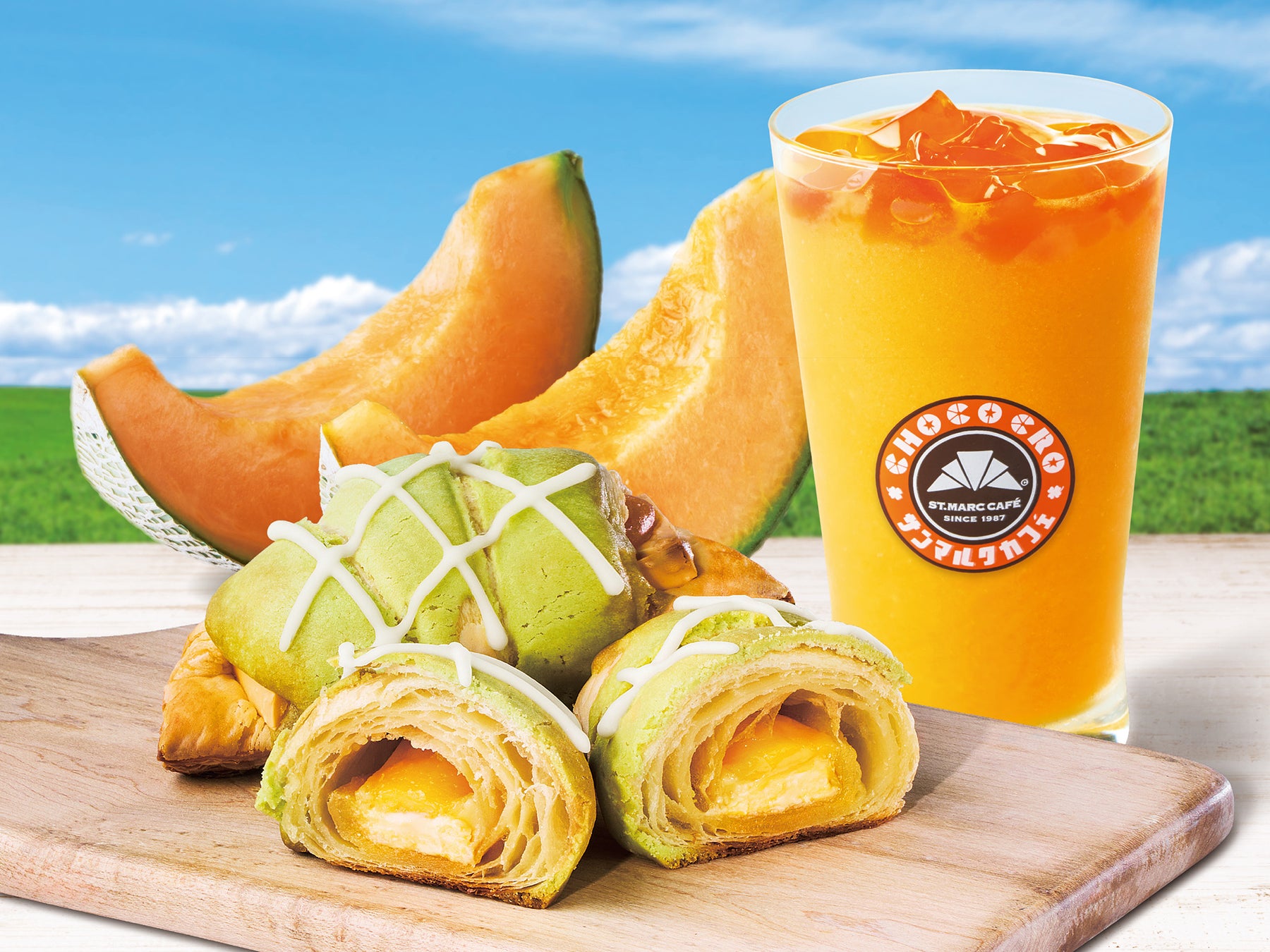 今年のサンマルクの夏には、猛暑に“涼”を感じられる、北海道ゆかりのメニューが期間限定で登場。さながら北海道にいるかのような、富良野メロンの贅沢な甘さを感じられるチョコクロやスムージー、シメパフェ文化を牽引するパフェの匠「パフェ佐藤」が全面監修し、緻密に計算された奥深い味わいを堪能いただけるパフェなど豪華なラインナップをご用意しました。