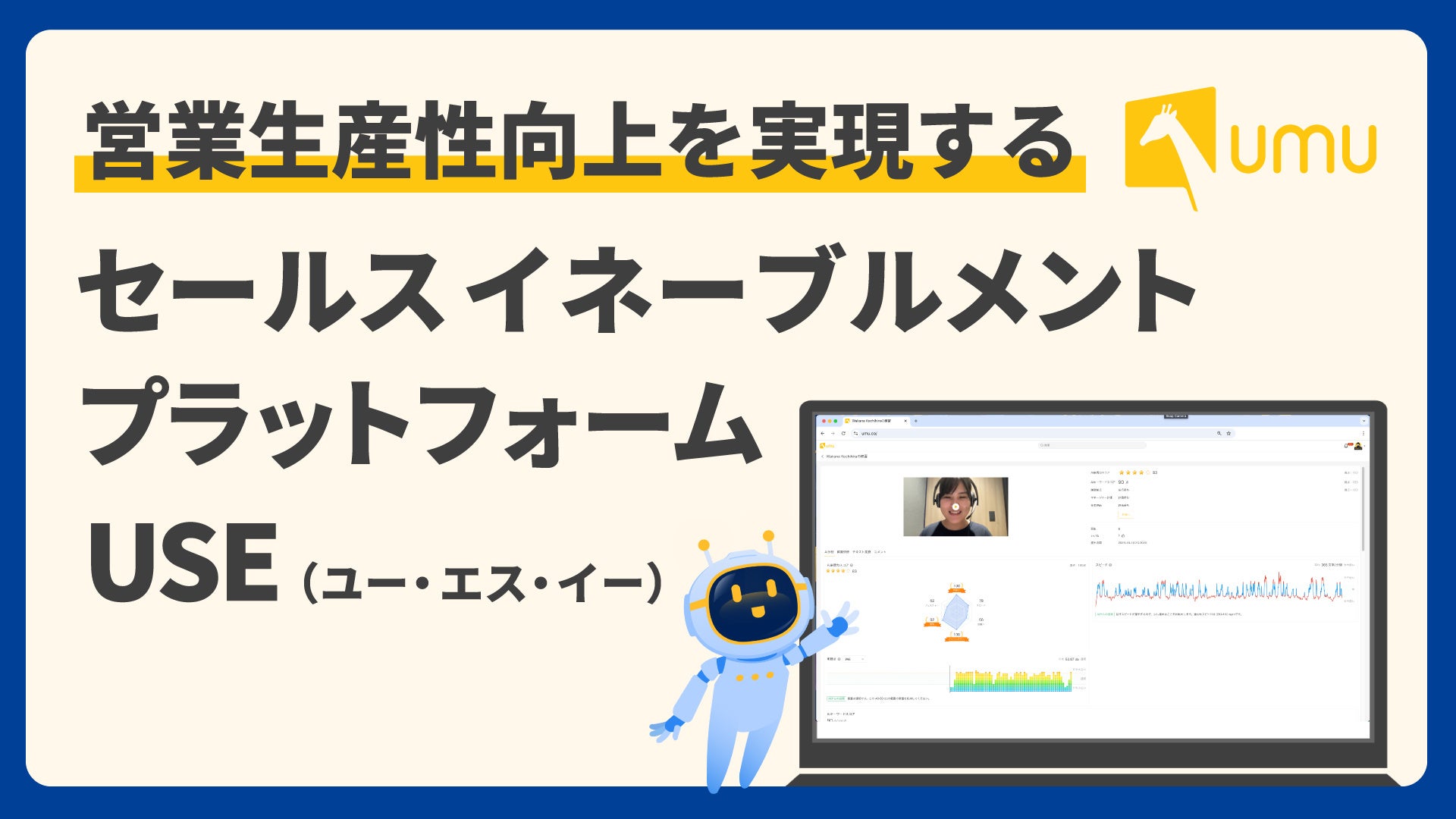 ユームテクノロジージャパン株式会社(本社:東京都港区、代表取締役:松田しゅう平、https://www.umujapan.co.jp、以下、UMU)は、最新のAI技術と学習科学に基づいた「セールスイネーブルメント・プラットフォームUSE(ユー・エス・イー)」をリリースしました。USEは、セールスイネーブルメント(営業を育てる仕組み)をデジタルで実現するためのLMS、営業支援、コーチングを一体化したSaaSプラットフォームです。これにより、従来のアナログ営業支援をデジタルで効率的かつ効果的に改善できる新しいアプローチを提供します。