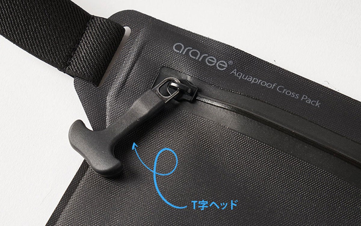 ジッパー部には水の侵入を防ぐ止水ファスナーを使用。T字ジッパーヘッドとの組み合わせで濡れた手でも簡単に開閉。
