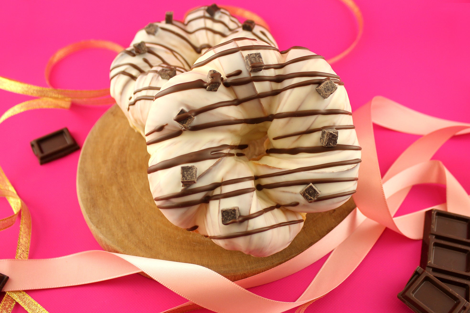 クロワッサン×ベーグルのハイブリッドな生地を焼き上げ、仕上げにホワイトチョコ・チャンクチョコをトッピングしました。クロワッサンのパリパリ食感×ベーグルのもちもち食感が合わさった大人気のクロワッサンベーグル。ホワイトチョコがたっぷりかかった冬らしい見た目もキュートな一品です。