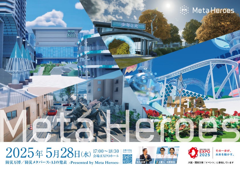 株式会社Meta Heroes(本社:大阪市、代表取締役:松石和俊、以下「当社」)は、2025年5月28日(水)に大阪・関西万博「EXPOホール」で開催される一般催事「防災万博」にて、17:00〜18:30のセッション「防災メタバース・AIの発表」を実施いたします。