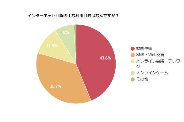 インターネット回線の主な利用目的は動画視聴が43.8%で最多