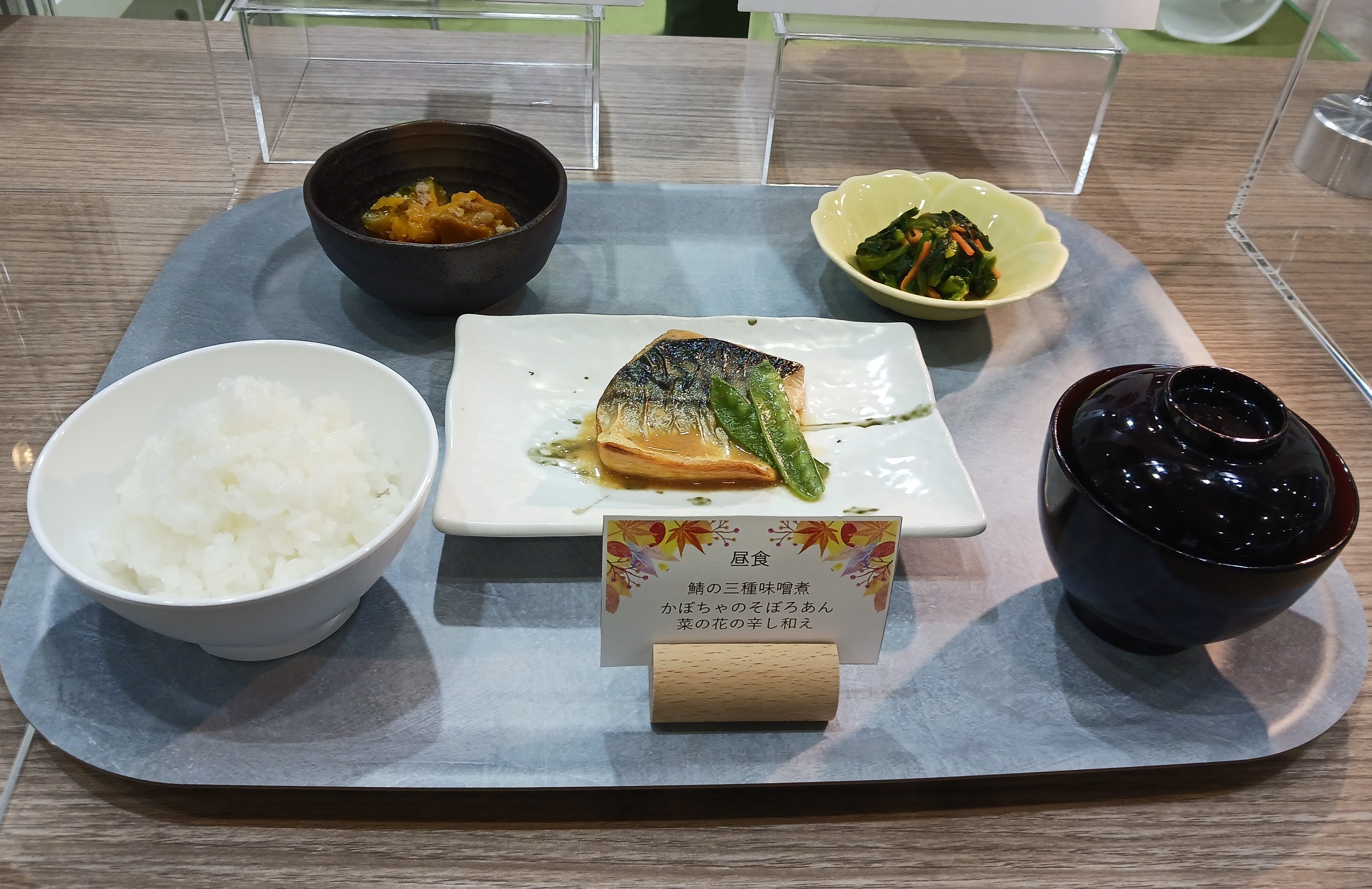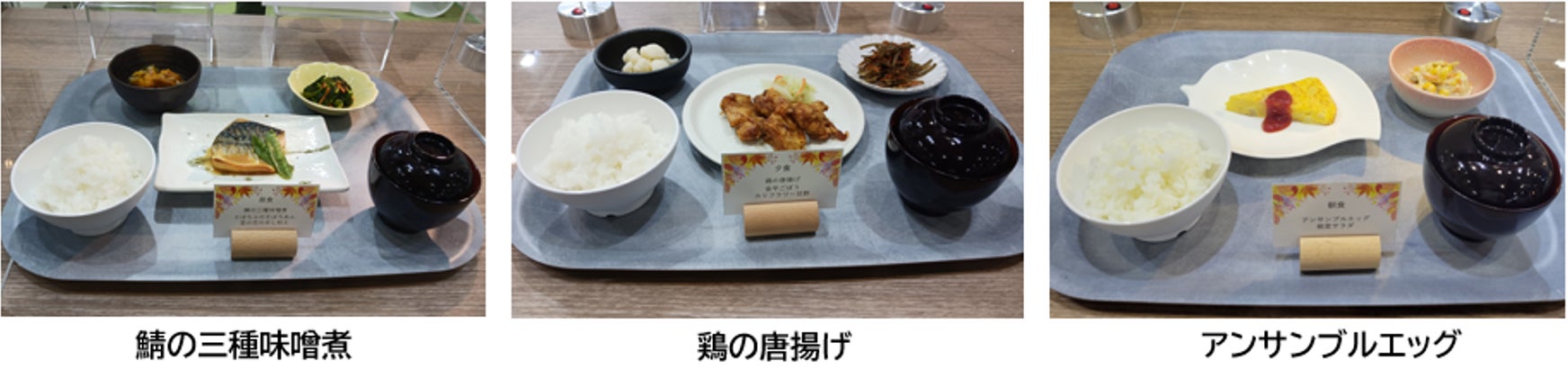 展示会では、ミールパックを取り入れた省力化を期待できるオペレーションサービス「LEOC Ready-made」(以下「LEOCレディメイド」)をご紹介しております。科学的根拠に基づいたLEOCならではの調理法で作るオリジナルメニューとして、脂がのった鯖と味噌だれの相性が抜群の「鯖の三種味噌煮」やお肉の柔らかさにこだわり下処理をした「鶏の唐揚げ」などをご試食いただきました。その他には、形態食(ソフト食、ミキサー食)のサンプルなどを展示中です。