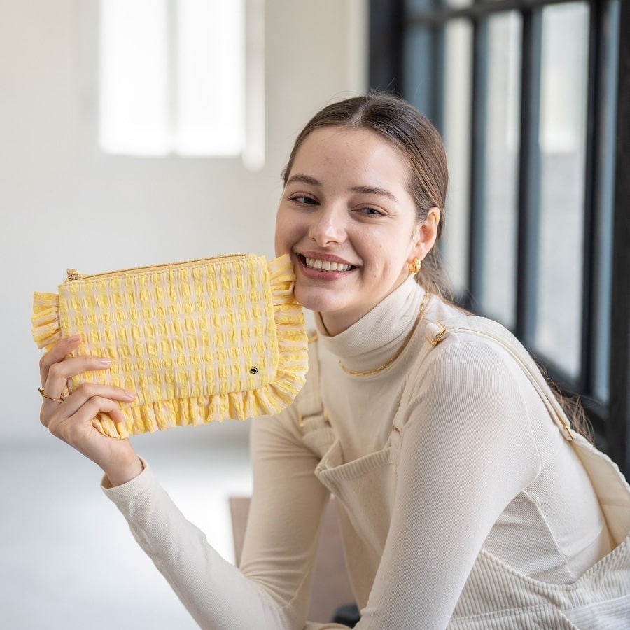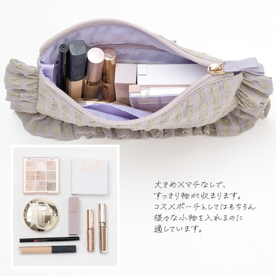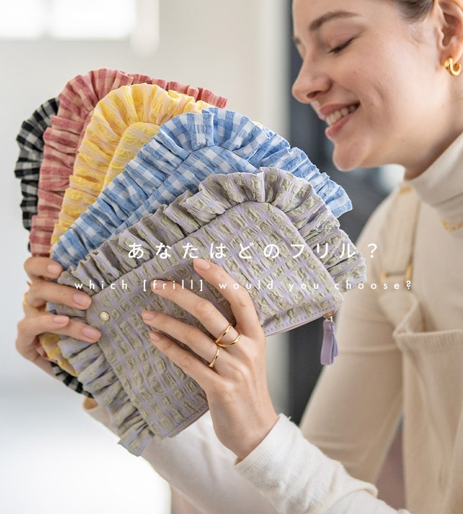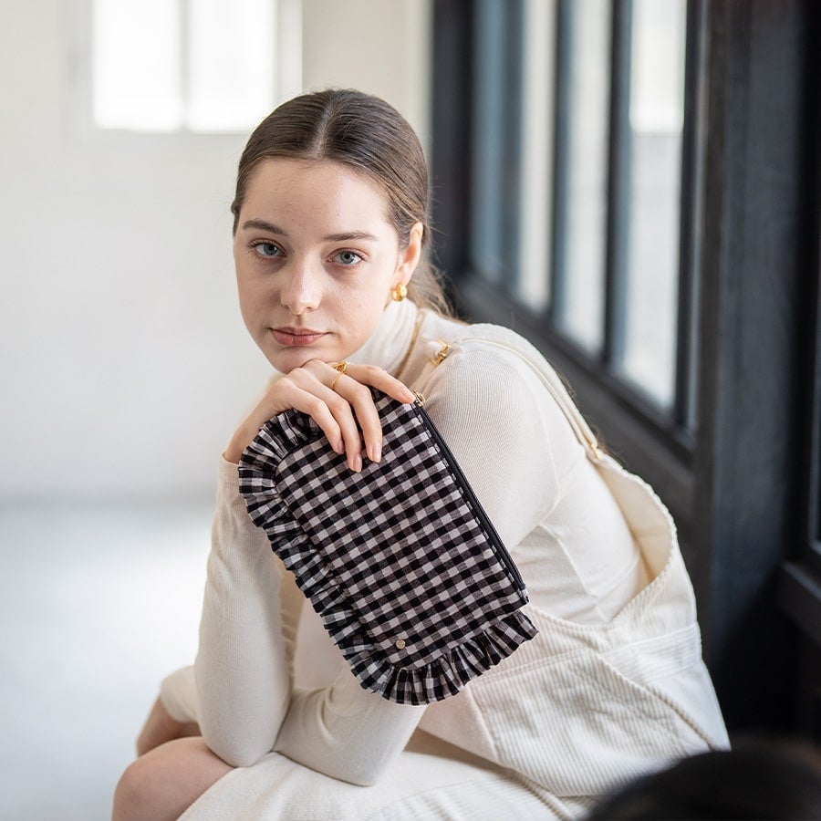 チェックにフリル。かわいい要素が詰まったポーチは、