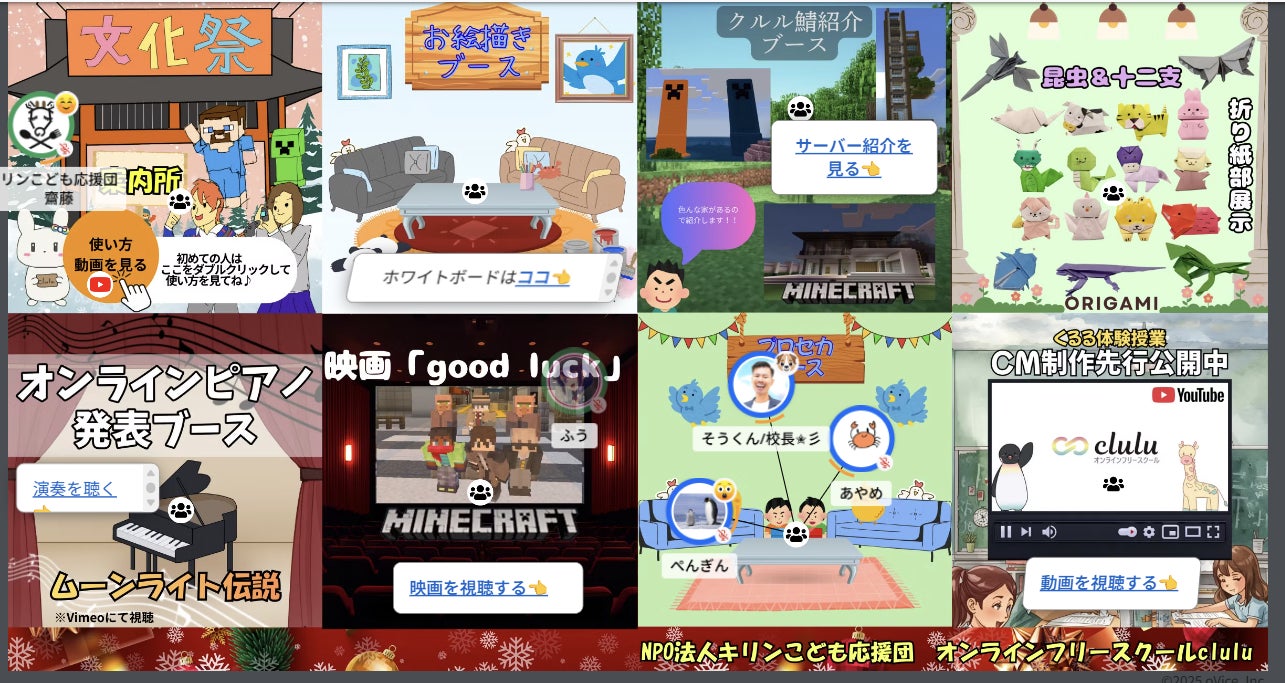 特定非営利活動法人キリンこども応援団(大阪府泉佐野市、代表 水取博隆)が運営するオンラインフリースクールclulu(クルル)(校長 篠田想) では、2025年12月20日(金)に第3回オンライン文化祭を開催いたしました。