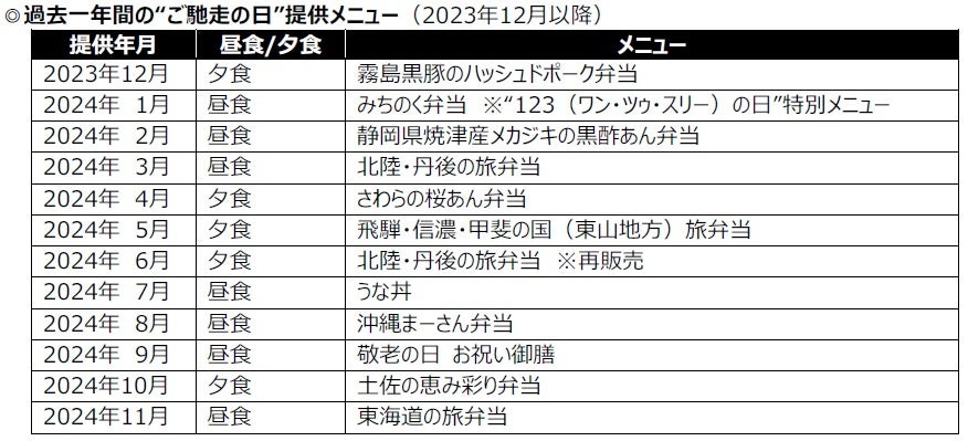 当社では、栄養バランスが整った食事を摂ることによる“体の栄養”に加え、“心の栄養”につながる取り組みとして、“ご馳走の日”を月に1回設けています。“ご馳走の日”には、各地域の食材やご当地メニューなどを取り入れた特別メニューを、通常のお弁当(普通食)と同じ577円(税込・おかずのみ)で提供。普段はなかなか食べる機会の少ない食材やメニューで、利用者が届くまでの待ち遠しさや誰かに自慢したくなる気持ちを感じられるお弁当になるよう心掛けています。