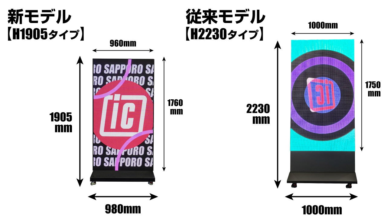 この度、株式会社インターコスモスは、折りたたんで持ち運べるLEDビジョン【パカットビジョン】に、新サイズ【H1905タイプ】のラインナップを追加いたしました。