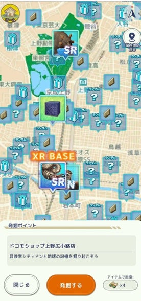 現実世界にアプリをかざして化石を発掘・復元すると、絶滅してしまった恐竜などの絶滅動物が目の前に出現します。さらにお気に入りの絶滅動物を自分の好みに育成し、他のプレイヤーと対戦できます。絶滅動物の発掘ポイント(地球の記憶やアイテム含む)は全国40,000箇所以上あり、あなたの街にも恐竜が出現するかもしれません。