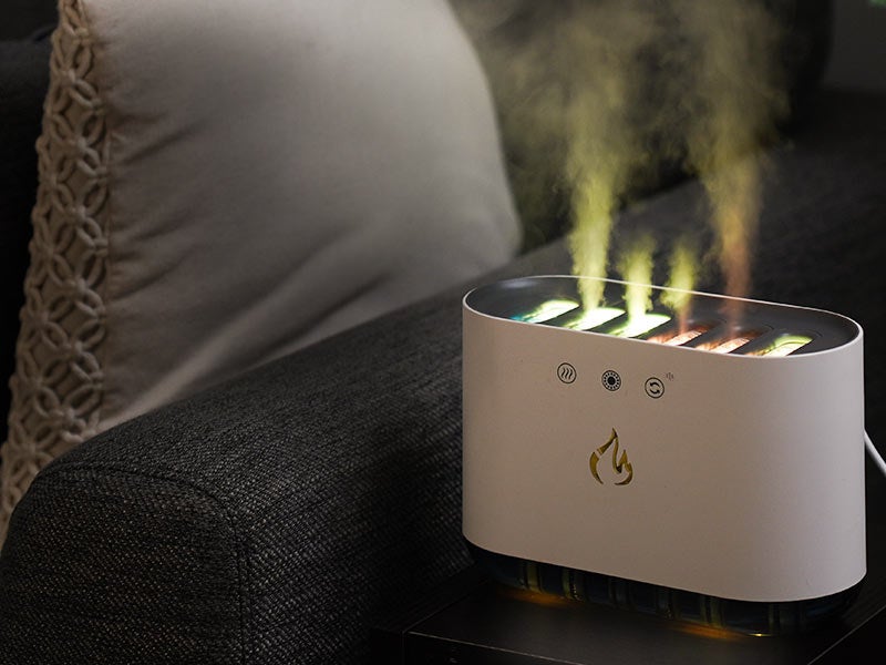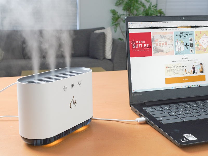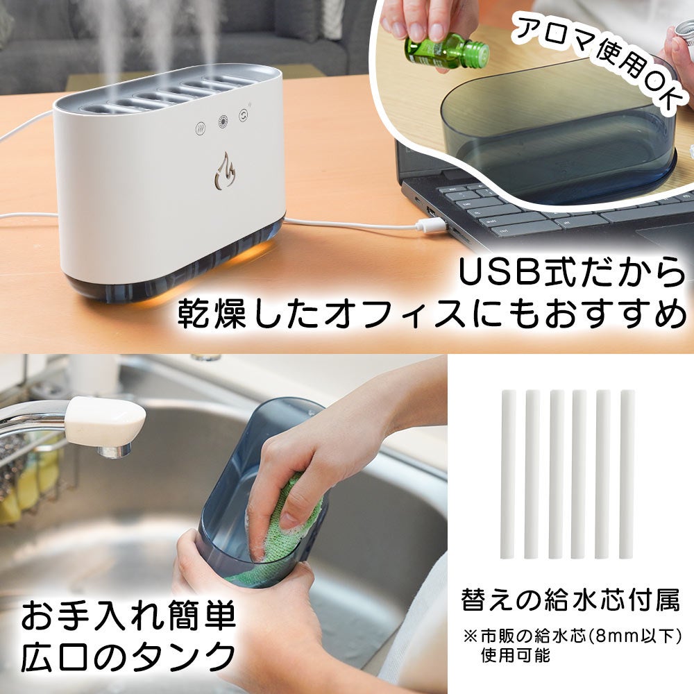 タンク容量800ml。加湿量1時間当たり最大約200ml。USB給電式。LEDを搭載。