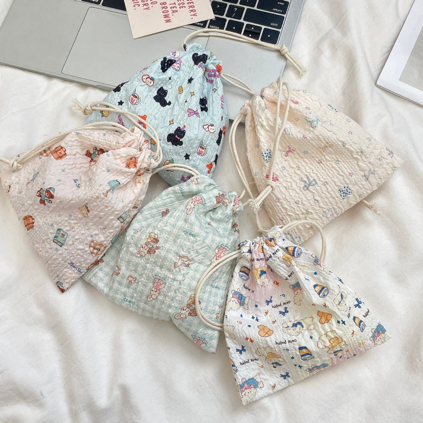 巾着 シルク印刷や、熱転写印刷、DTF印刷(フチなし熱転写)、インクジェット印刷