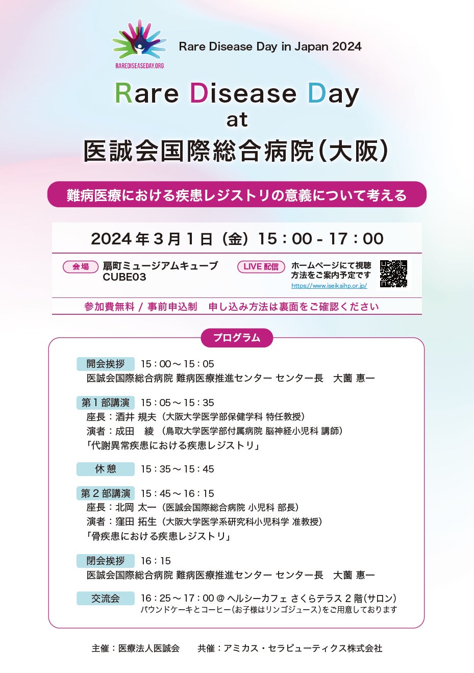医療法人医誠会(大阪市北区:理事長 谷幸治)は、2024年3月1日(金曜日)に「Rare Disease Day at 医誠会国際総合病院(大阪)」を扇町ミュージアムキューブ CUBE03にて開催します。