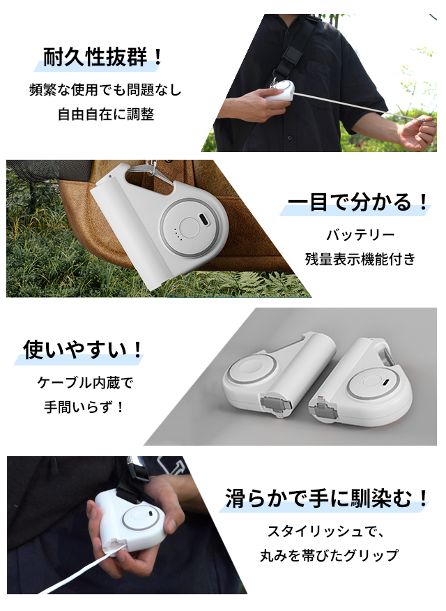 使い終わった後は、軽く引くだけでケーブルがすっきりと収納されるので、絡まりや収納の手間も心配ありません。