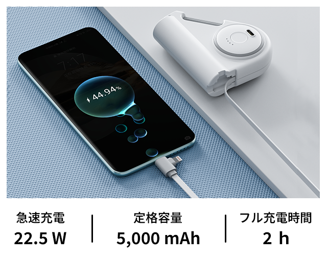 22.5WのPD急速充電機能をサポートしており、忙しい日常でも、短時間で充電を完了できるので非常に便利です。また、本製品への充電も高速で行うことができ、最大18Wの出力を実現しています。