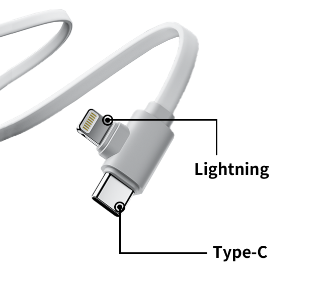 従来の充電器はType-Cポートが1つしかありませんが、この製品はType-CとLightningの2つのポートを搭載しています。様々なデバイスに対応していますので、複数のケーブルを持ち歩く手間を省けます。