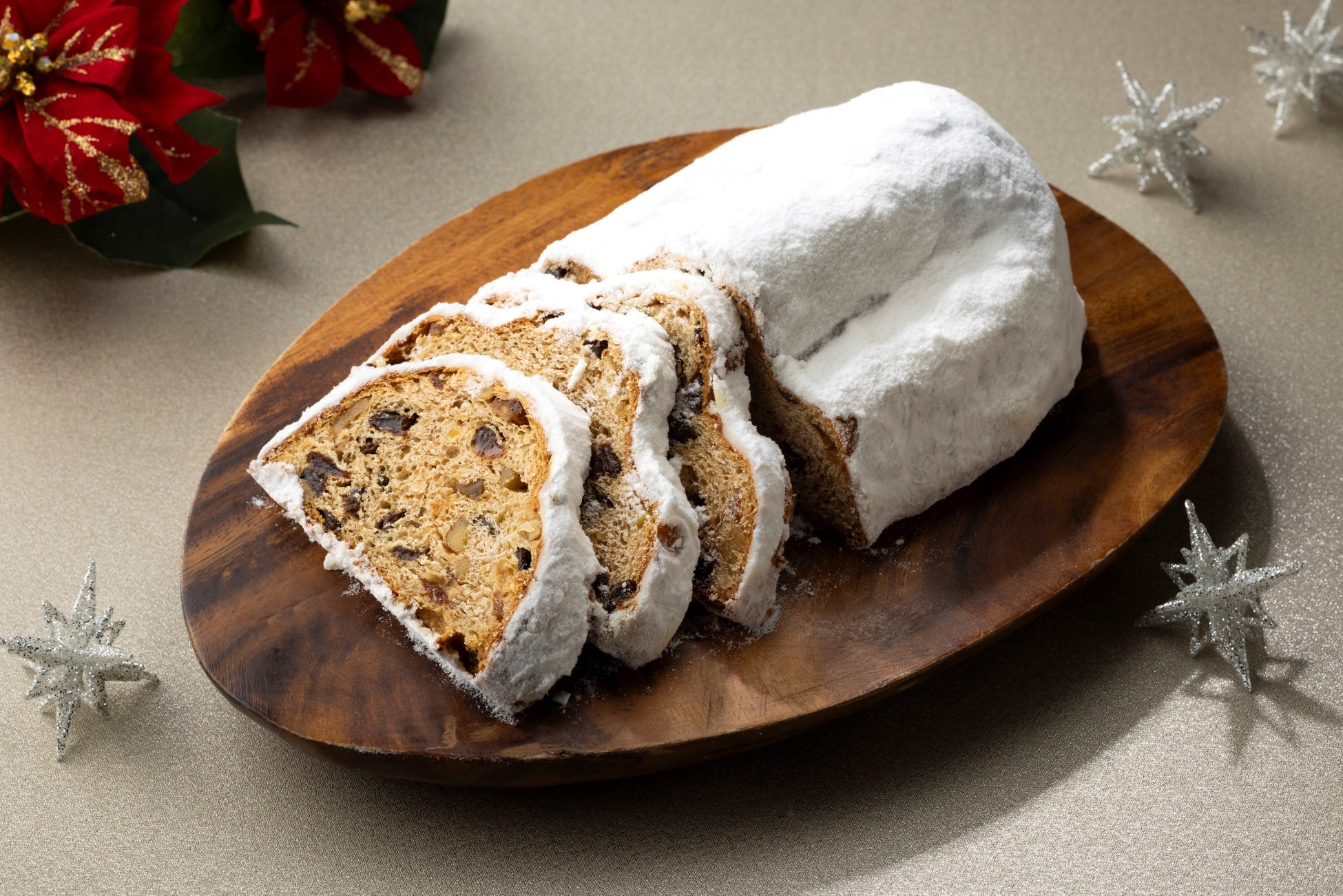 パウダーシュガーをたっぷりまぶしたドイツの伝統的なクリスマスのお菓子。ローストしたピーナッツの香ばしさと、ラムレーズンのしっとり感、