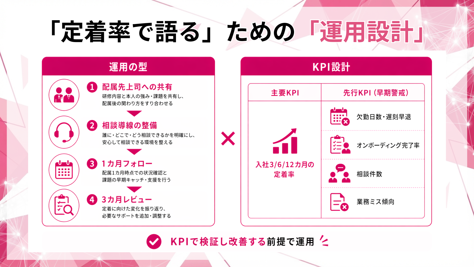 3カ月レビュー(定着率・先行KPIで検証し改善)