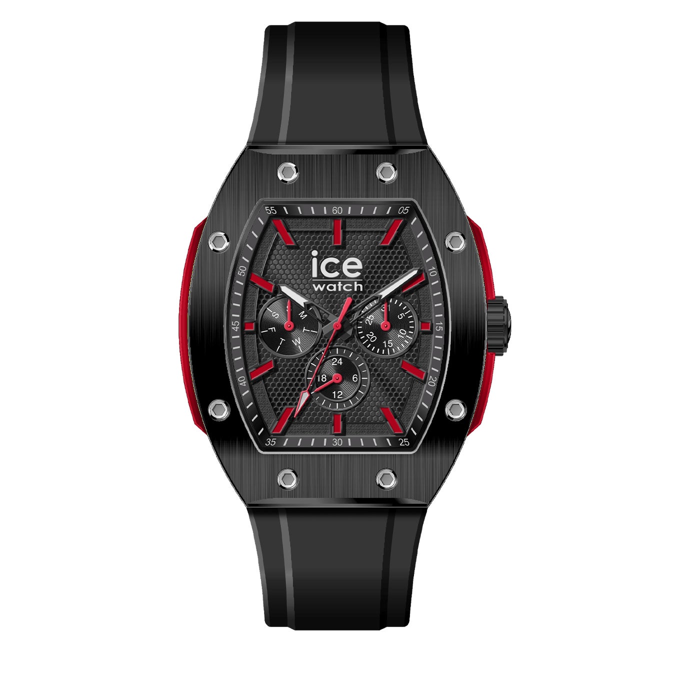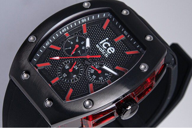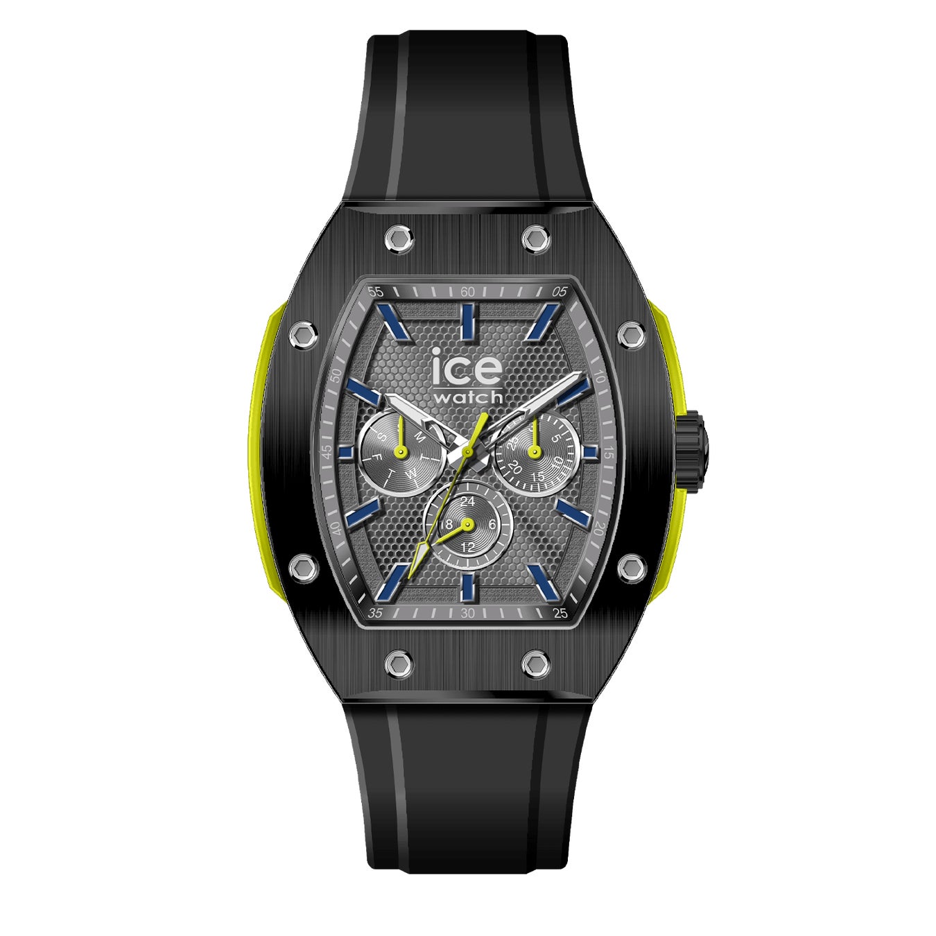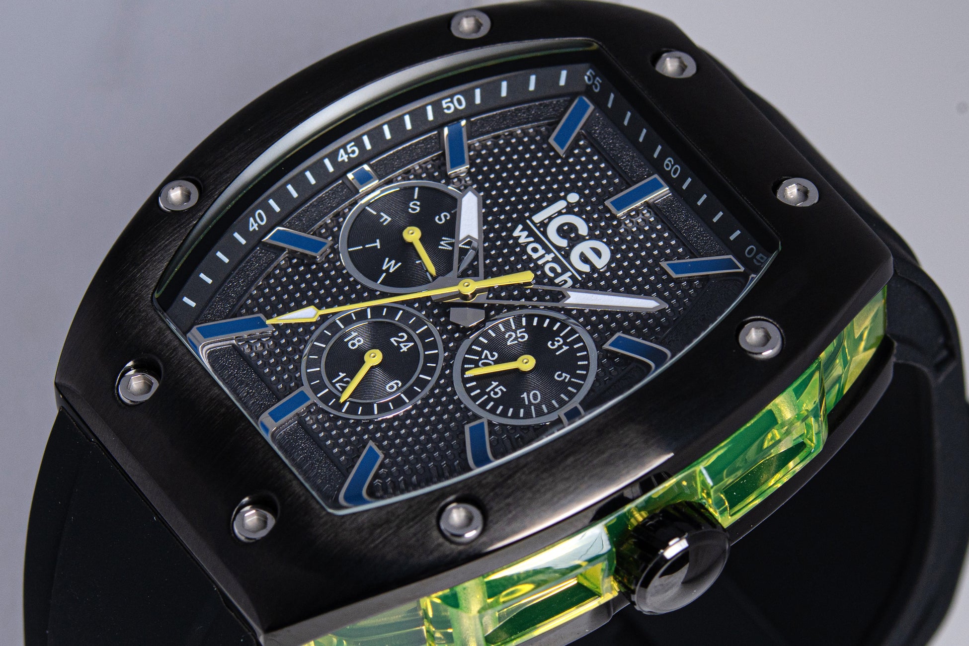 コレクションの頂点に位置するのが「ICE boliday prestige(アイスボリデイプレステージ)」。43mmのビッグフェイスに、8本のビスで固定されたステンレスベゼル、蛍光カラーの半透明ケース、光沢のあるハニカムデザインの文字盤…。スポーティーさとラグジュアリーが共存するデザインは、手元から圧倒的な存在感を演出します。曜日・日付・24時間表示を備えたマルチファンクション仕様や、肌なじみの良いシリコンベルトも搭載。ブラックイエロー、ホワイトブルー、ブラックレッドの3色展開で、スタイルに合わせたダイナミックな選択が可能です。