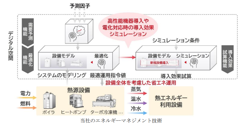 本ソリューションの提供を通じて、製造業やビルオーナー、熱供給事業者の課題を解決し、電力・熱のエネルギーコスト削減と脱炭素化の推進に貢献していきます。また、今後も、カーボンニュートラルの実現に向けて、デジタル技術を活用したE&Fソリューションの創出に取り組んでいきます。
