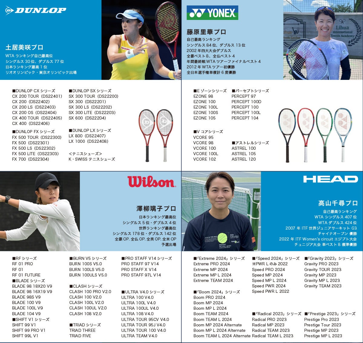 テニス:DUNLOP・Babolat・Wilson・YONEX・HEAD・Tecnifibre・Prince・KNEISSL