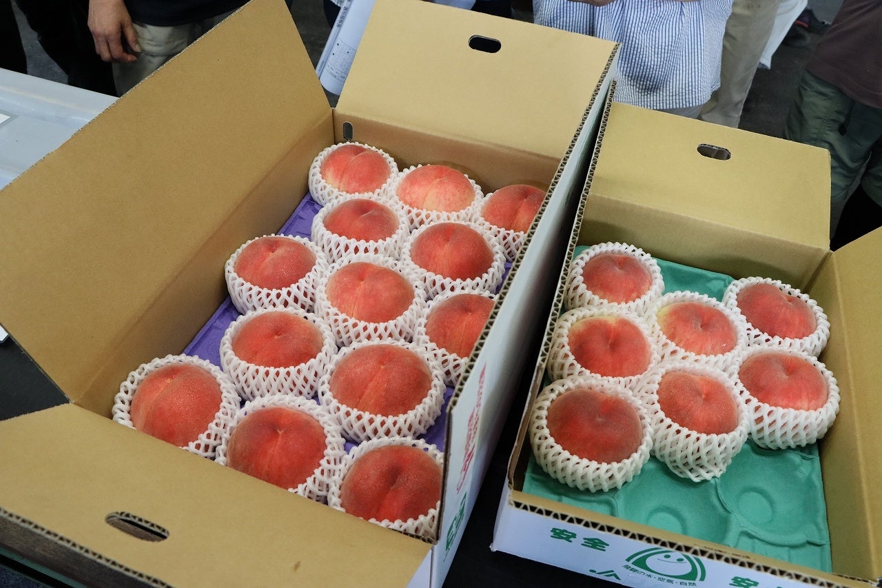 岐阜県高山市久々野町の特産品である「飛騨桃」の本格的な出荷を前に、飛騨桃の色や形の基準を統一する「目揃え会」が令和6年7月29日(月)に、同町のJAひだ久々野町果実選果場で行われました。