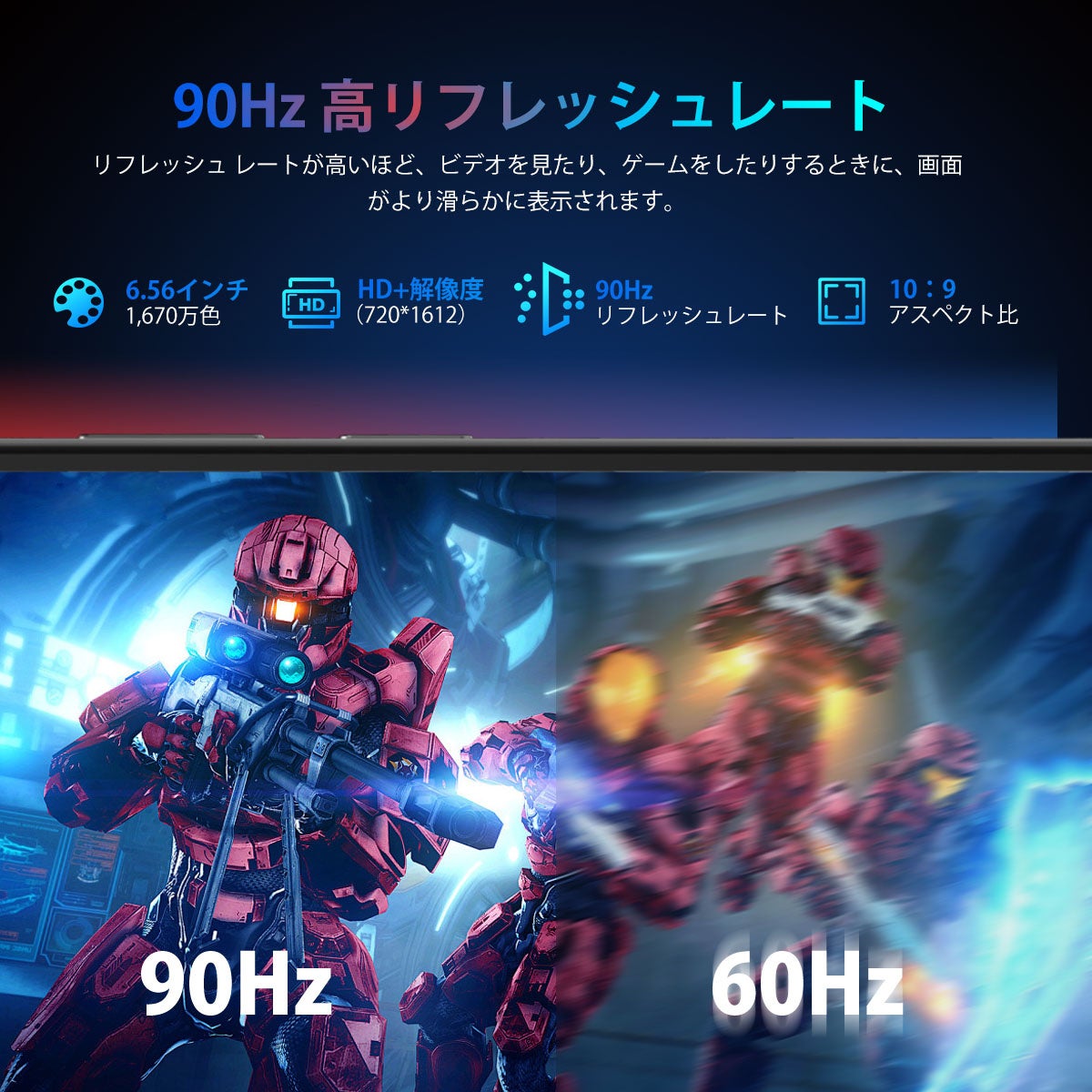 90Hzディスプレイは、一般的な60Hzディスプレイと比べ、滑らかで応答性の高い表示を提供します。画面のリフレッシュレートが高いため、スクロール時や動画視聴、ゲームプレイなどでの体験がより快適になります。特に、アニメーションの動きが自然に感じられ、視覚的なストレスが軽減されることから、ユーザーの満足度が向上するポイントとして評価されています。