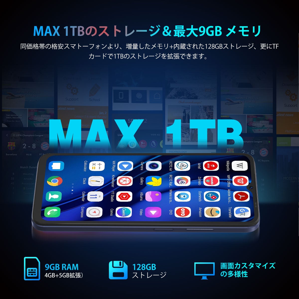 9GBのRAMと128GBのROMを備え、最大1TBまで拡張可能なストレージで、アプリやデータの保存もストレスなく行えます。