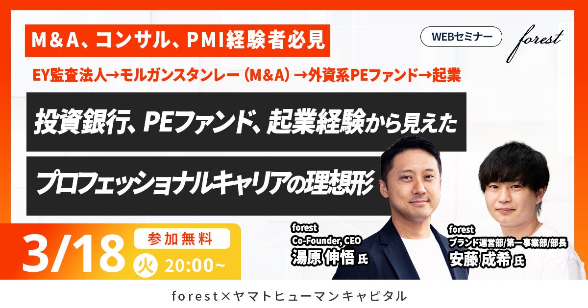【3/18開催】投資銀行、PEファンド、起業経験から見えたプロフェッショナルキャリアの理想形|forest × ヤマトヒューマンキャピタル