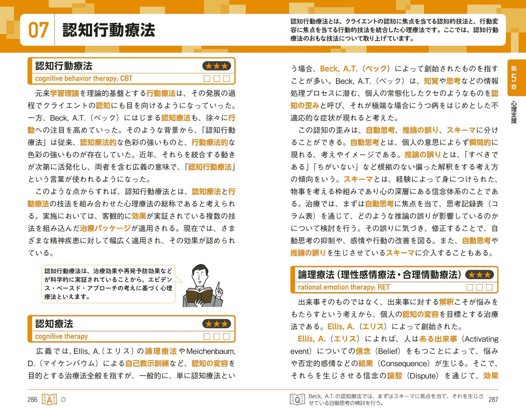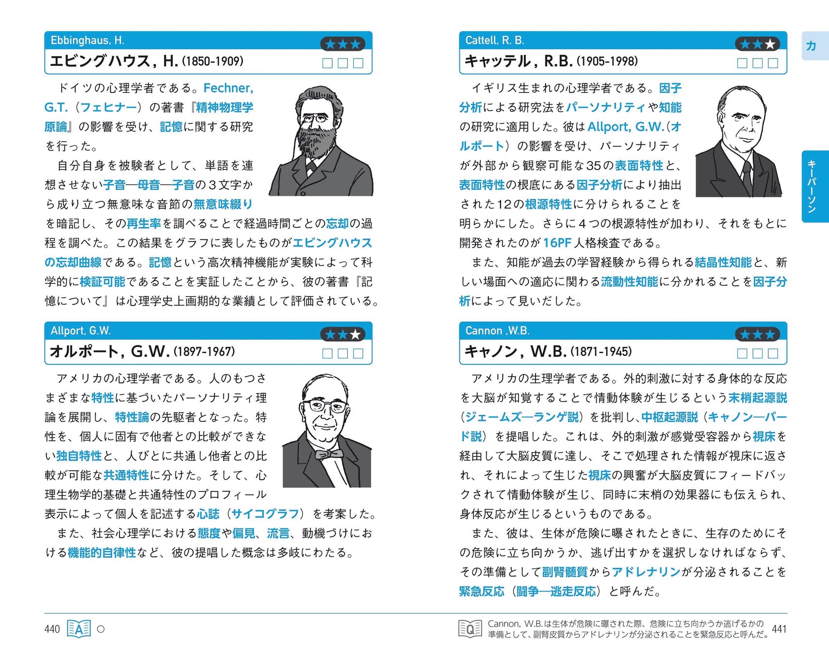 さまざまな心理学用語を分野別に配列。各用語を簡潔に解説するとともに、英語表記と重要度を併記しています。