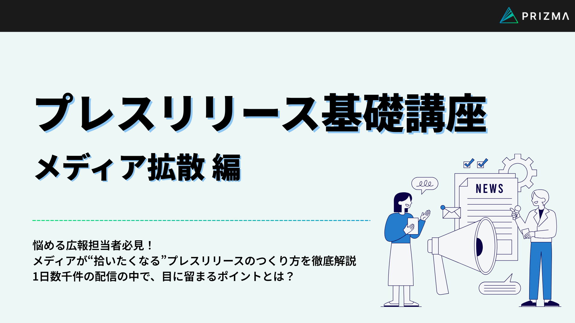 その現状を打破し、確実にメディア露出を獲得するため、株式会社PRIZMA(プリズマ)は、PR支援実績1,000社以上のノウハウを体系化した決定版資料『プレスリリース基礎講座 メディア拡散 編』を無料公開しました。