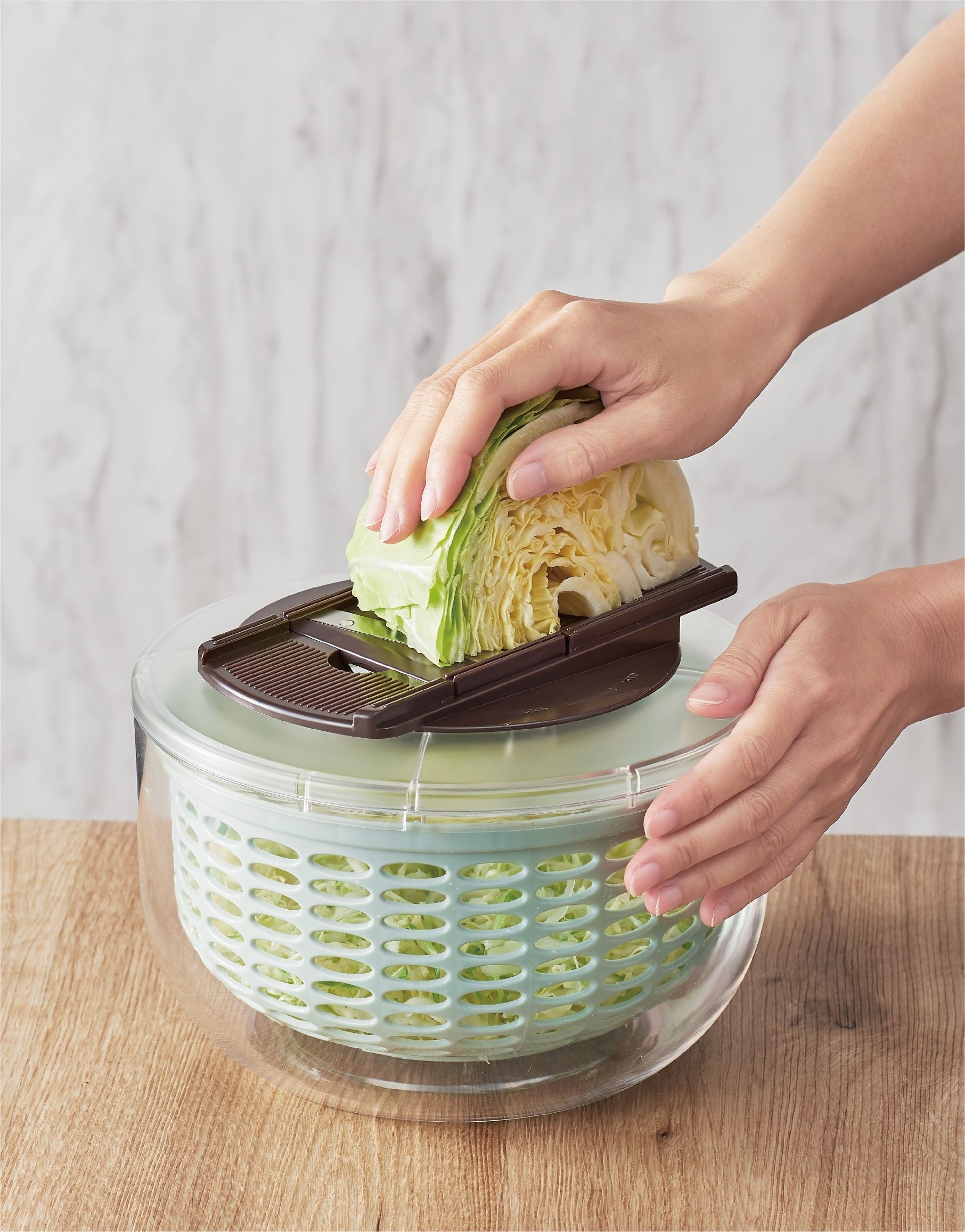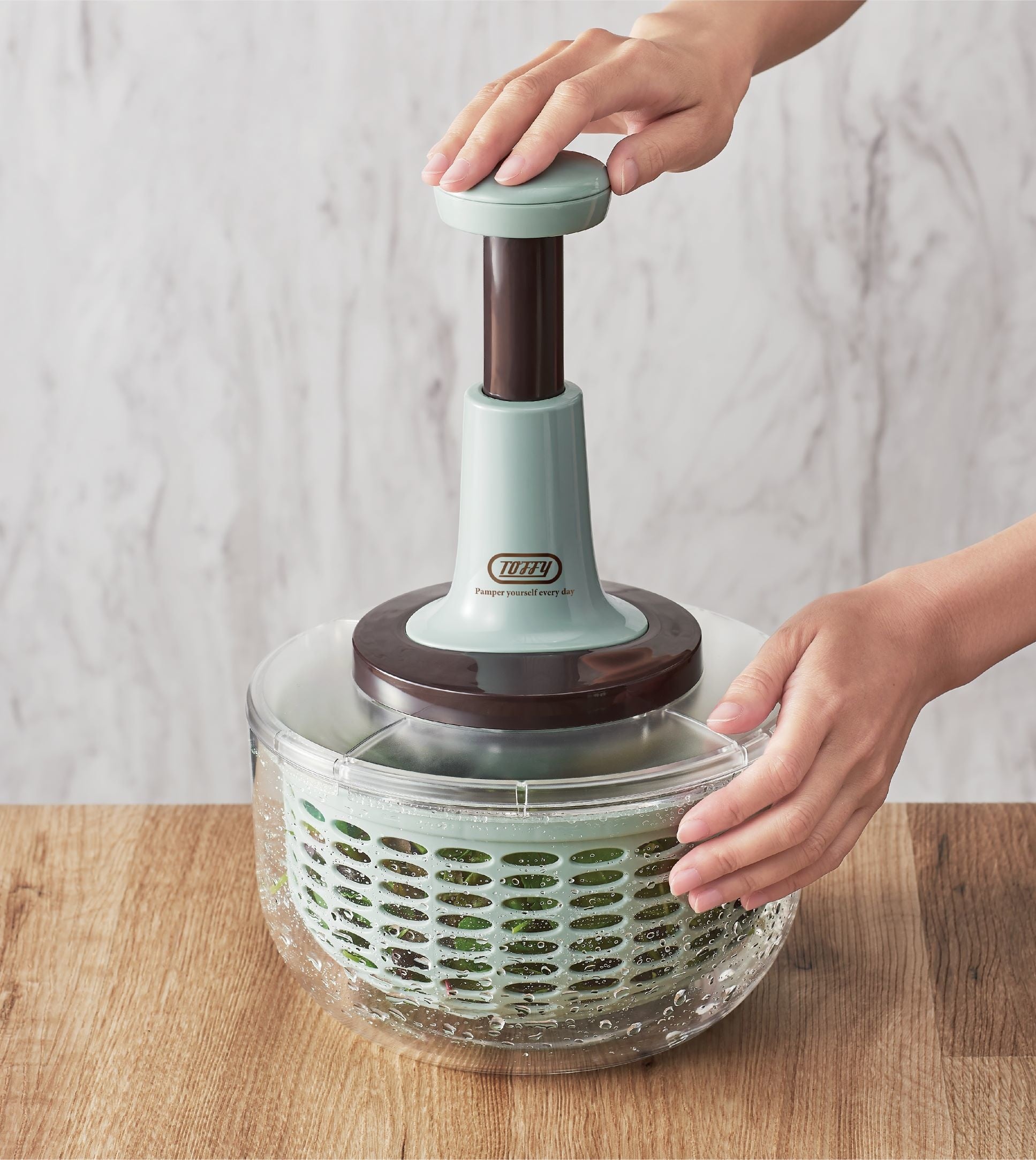 サラダスピナーとスライサーの1台2役!「Toffy プッシュサラダスピナー&スライサーセット」発売