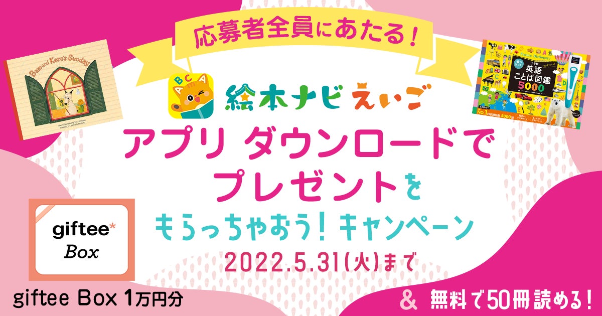 絵本の情報・通販サイト「絵本ナビ」を運営する株式会社絵本ナビ(本社東京都新宿区/代表取締役社長CEO 金柿秀幸、以下絵本ナビ)は、英語学習アプリ「絵本ナビえいご」のリリース1周年を記念して、5月31日(火)までの期間中、プレゼントキャンペーンを開催します。