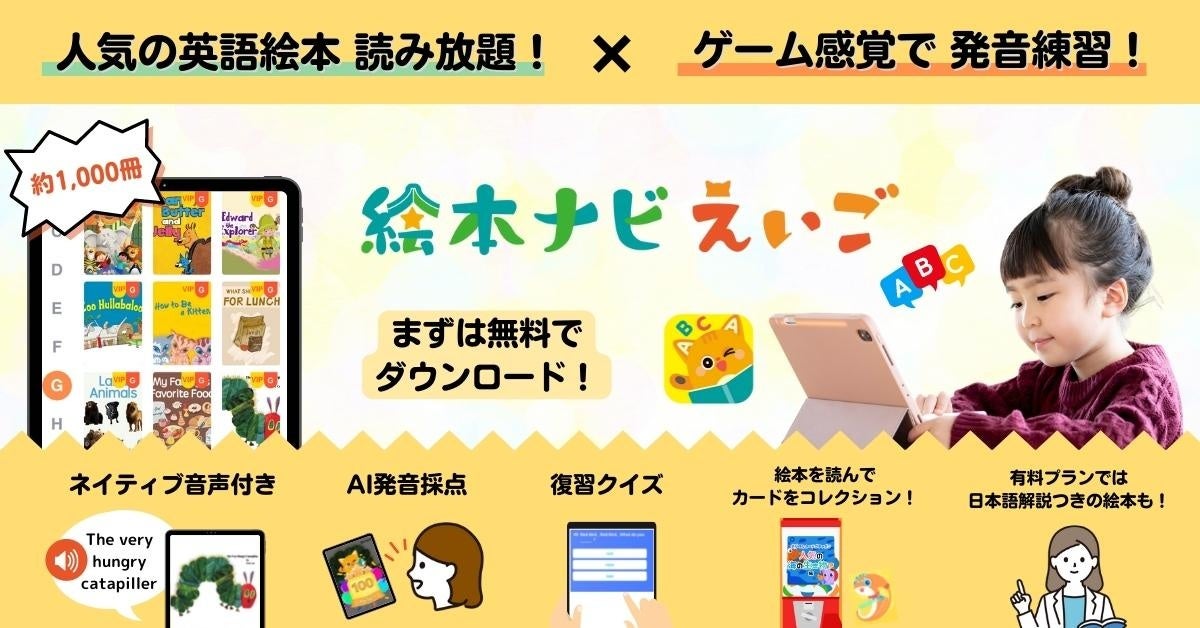 人気英語絵本1,000冊以上読み放題で、英語を「聞く・読む・話す」力を育てるアプリ『絵本ナビえいご』がリリース1周年を迎えます。