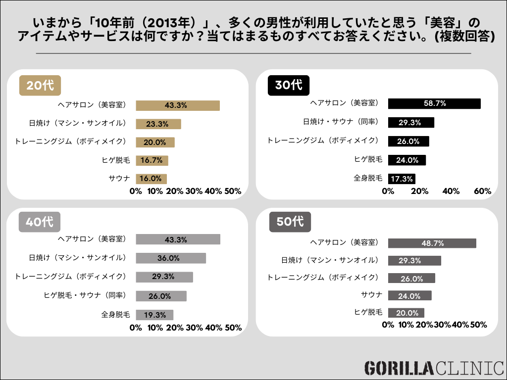 ◎《20~50代男性へ「美容意識」を調査》 「ムダ毛」という言葉はもう古い? 外見を形容する言葉の移り変わりほかを考察 ~ 唯一無二の「男性の総合美容医療」に挑み続け、ゴリラクリニックはこの秋で9周年