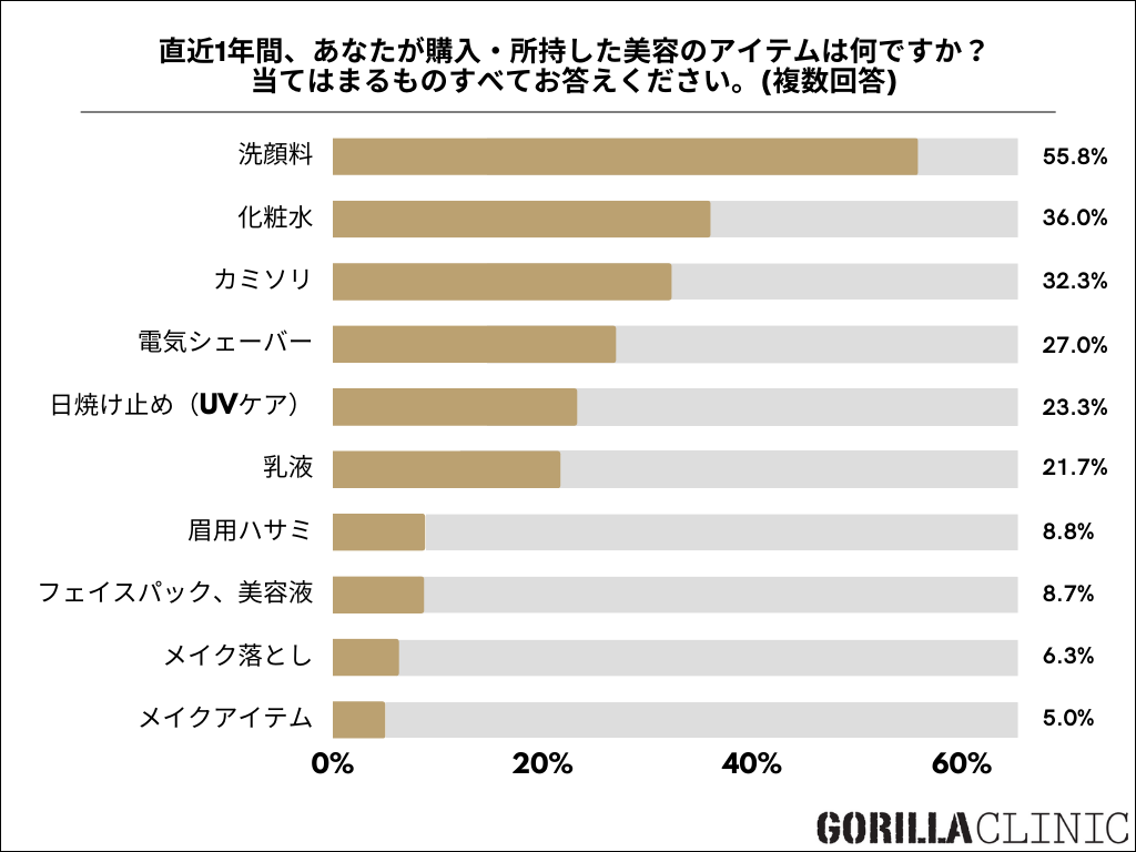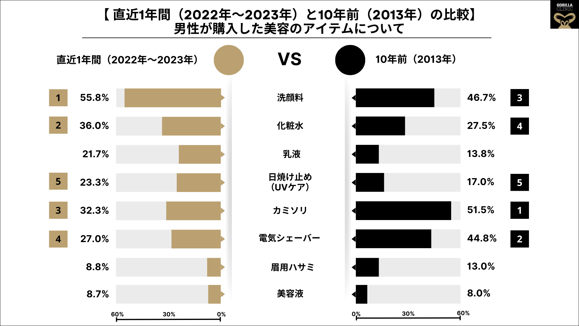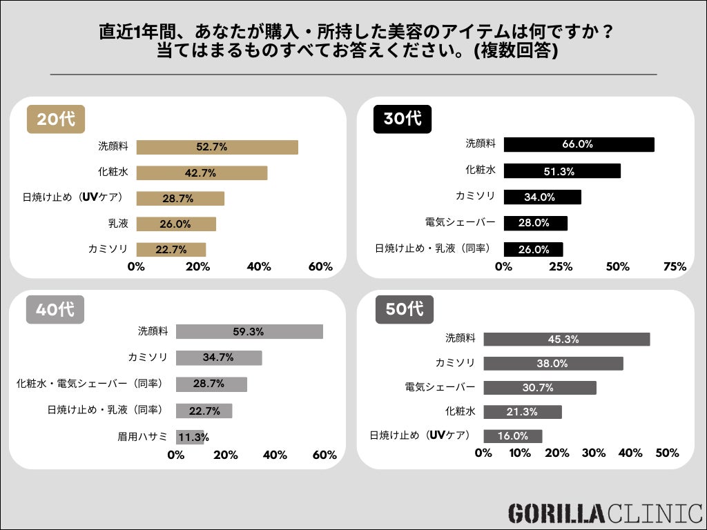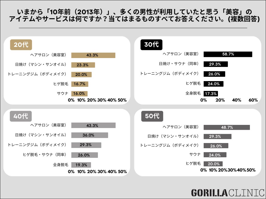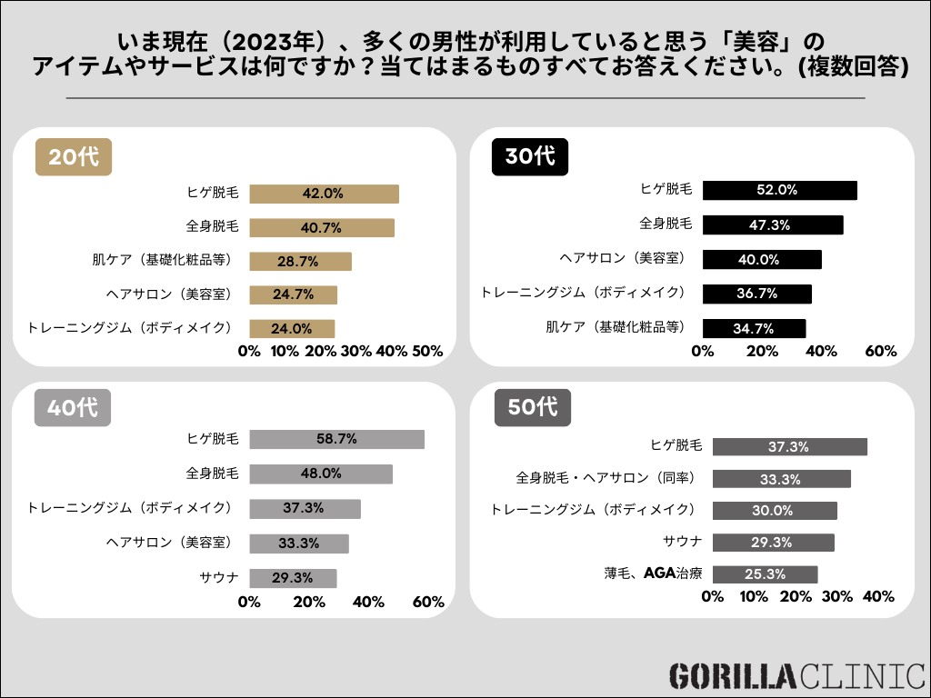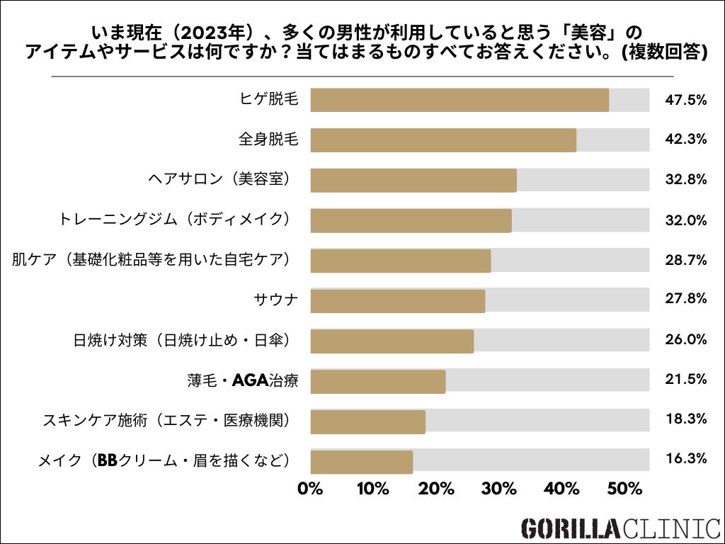 ◎調査機関 :男性専門の総合美容医療『ゴリラクリニック』調べ ※要クレジット表記・各質問の詳細・グラフは、添付のPDF資料またはスクロール下を参照 |