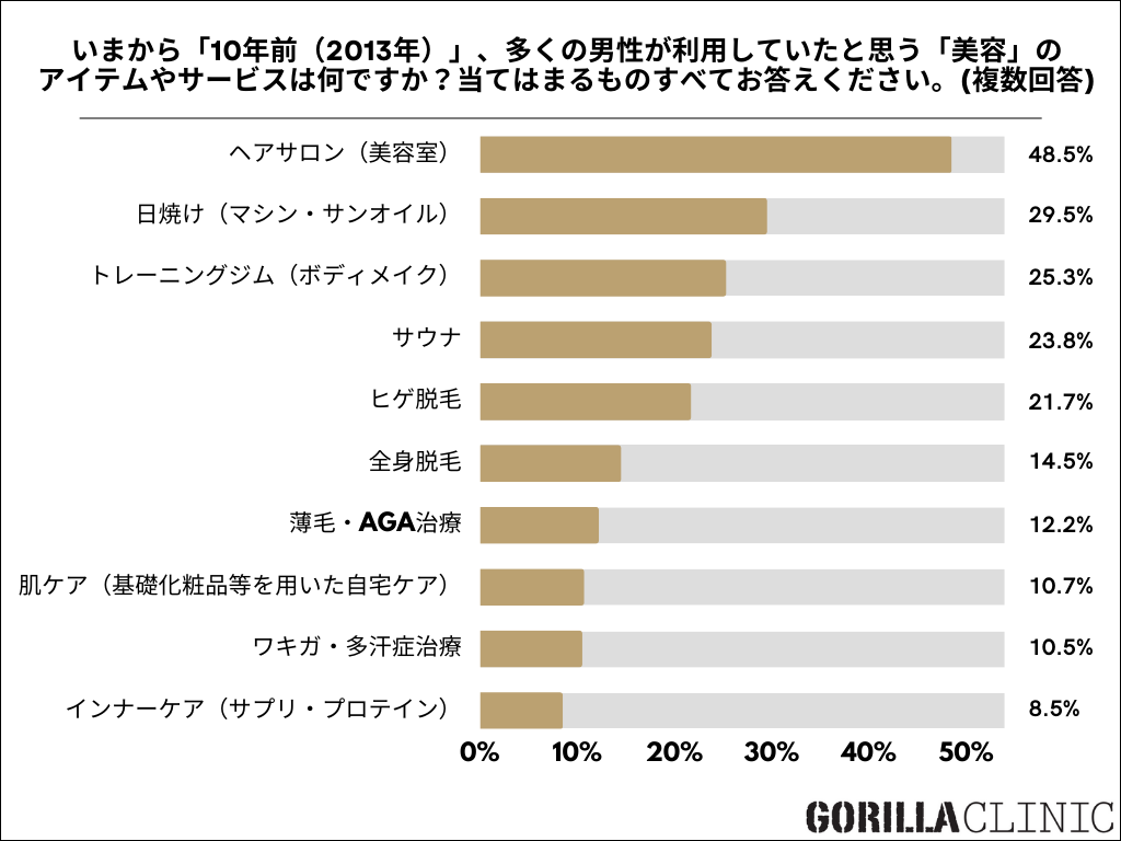 ②【10年前(2013年)の「メンズ美容」といえば?】