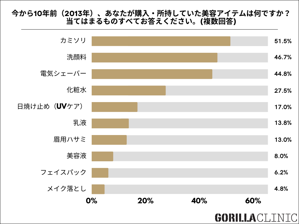 ●質問/今から10年前(2023年)、あなたが購入・所持していた美容アイテムは何ですか? (複数回答)