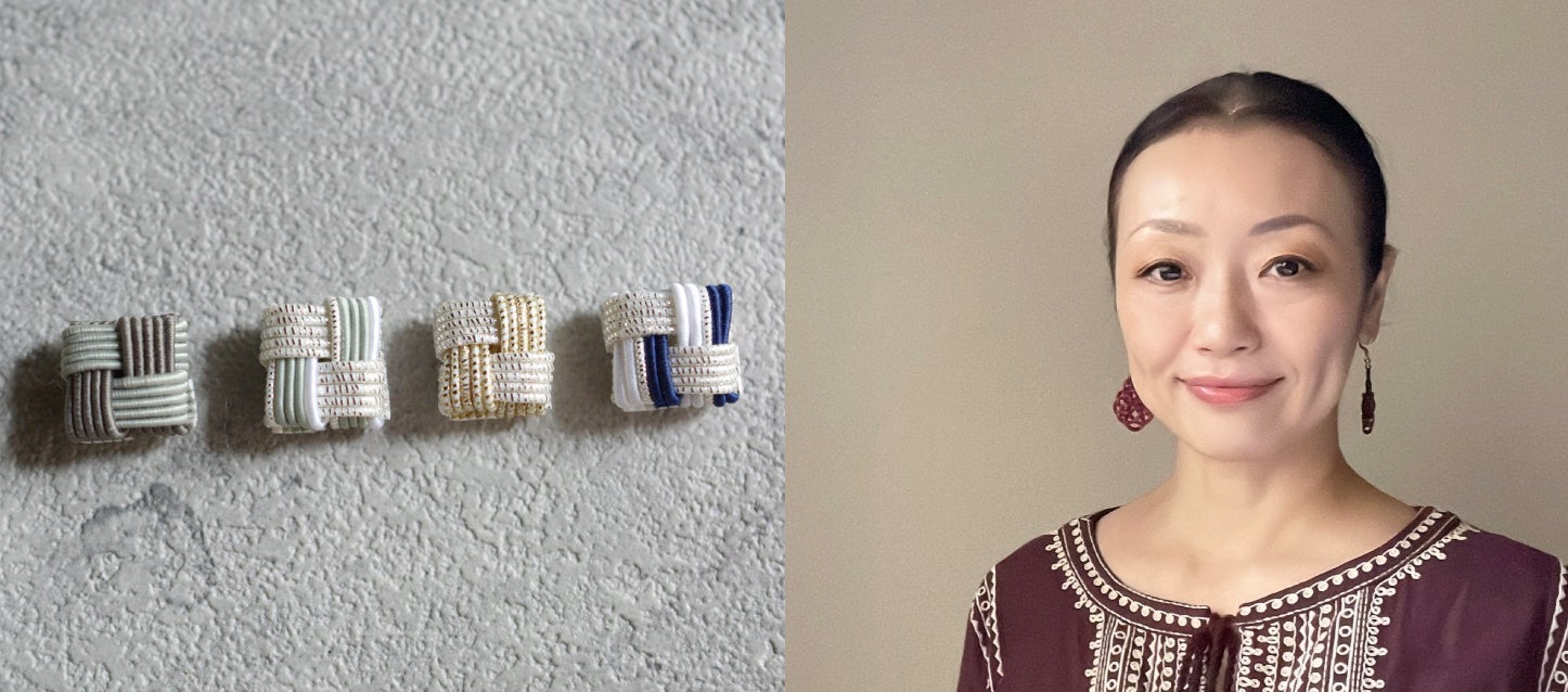 水引の基本技法で、市松模様のピアスやカフスなどを作ります。完成したアクセサリーに精油を垂らして香りを身にまとってみませんか。(パーツはカフス、イヤリング、ピアス、ピンズから選択可能)