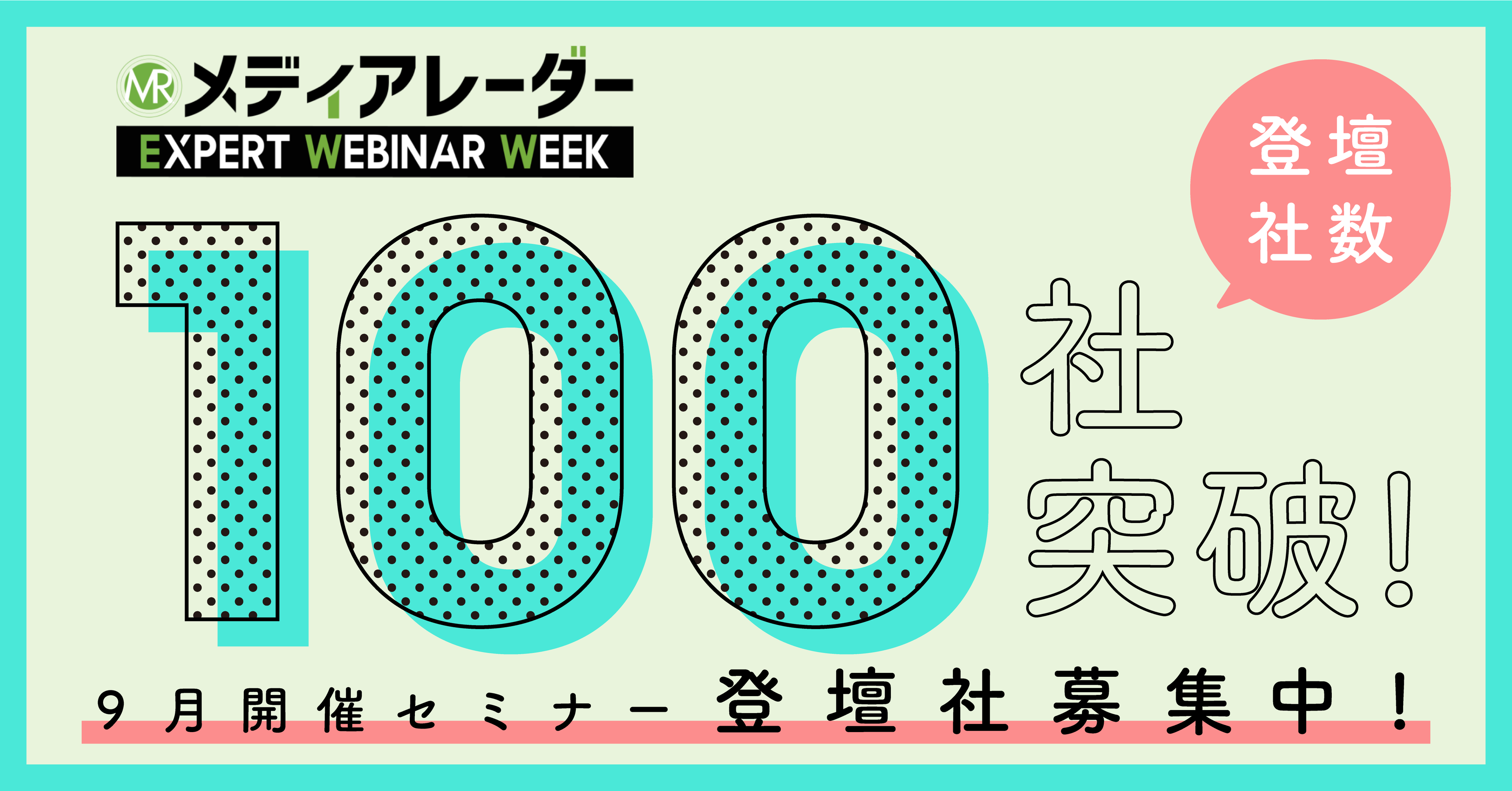 「メディアレーダー EXPERT WEBINAR WEEK」登壇社数100社突破!9月開催の登壇企業募集中!