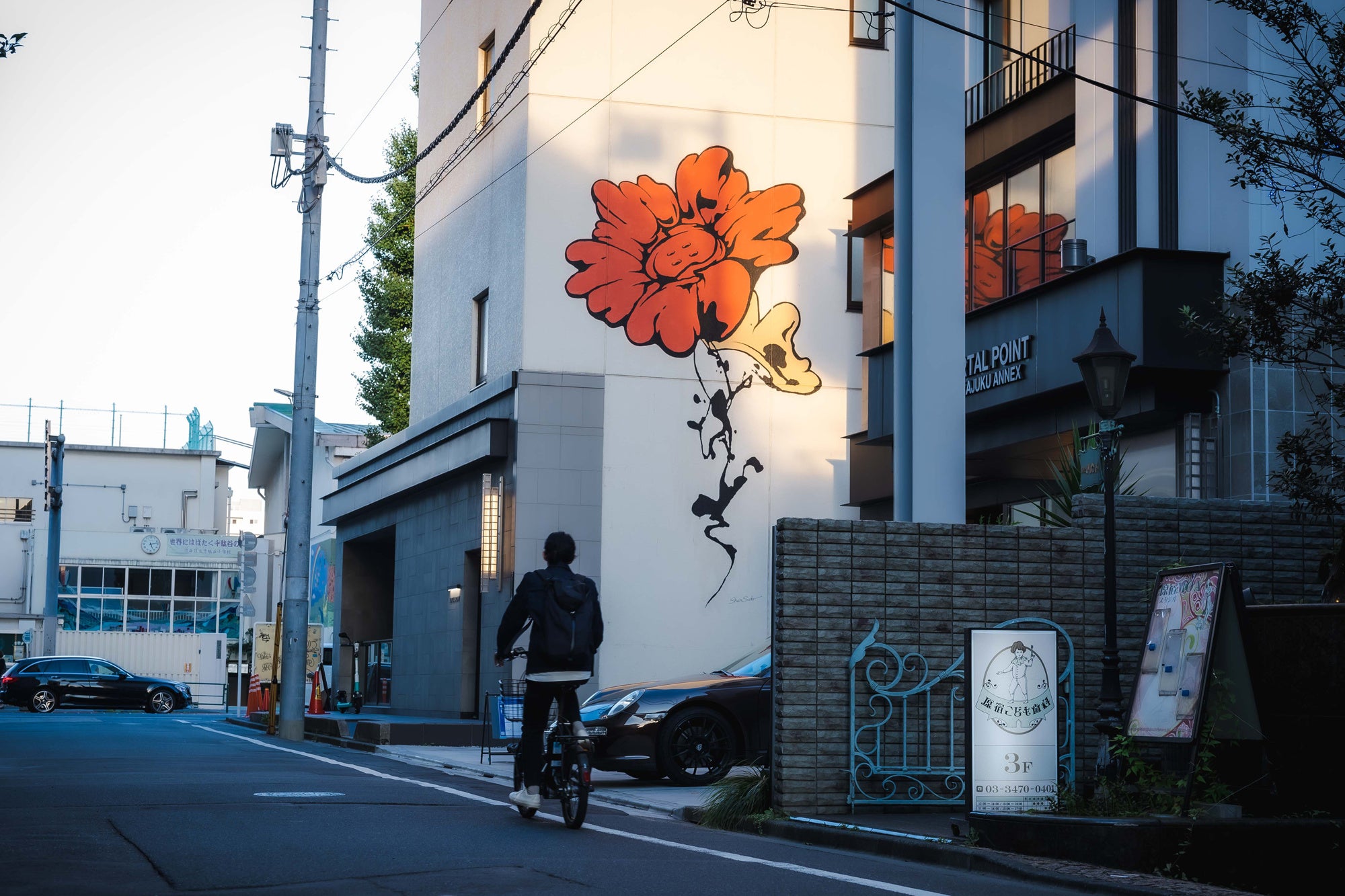 ▲REALGATE Bldg・ PORTAL POINT HARAJUKU ANNEX外壁に描かれるボタンフラワー